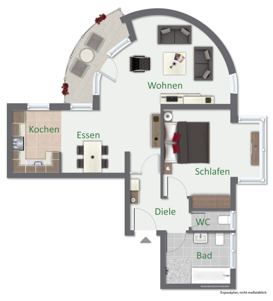 Diese außergewöhnliche Wohnung überzeugt durch ihren offen gestalteten Grundriss und ein lichtdurchflutetes Ambiente. Das Herzstück bildet das großzügige Wohn- und Esszimmer im Rheinturm, welches nahtlos in die offene Küche übergeht. Bei Bedarf lässt sich die Küche auch räumlich abtrennen. Das separate Schlafzimmer bietet mit seinen bodentiefen Fenstern ausreichend Platz für Ihre individuellen Einrichtungsideen. Ein weiterer Pluspunkt ist der Balkon, welcher direkt vom Wohnzimmer zugänglich ist, ideal für entspannte Stunden im Freien. Ergänzt wird die Wohnung durch das Tageslichtbad mit Badewanne und Dusche und ein separates WC.