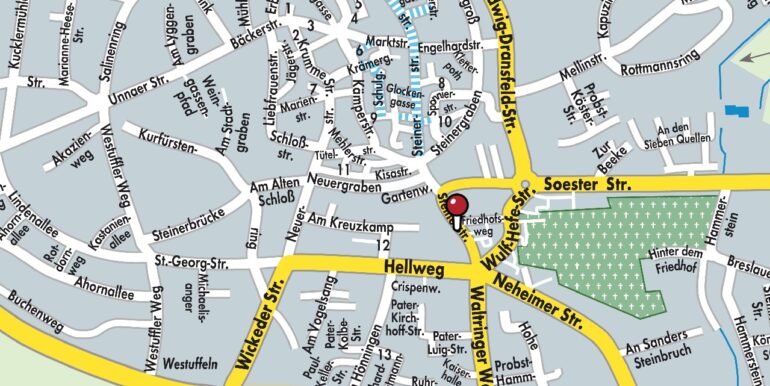 Die Wohnung befindet sich in zentraler, innenstadtnaher Lage. Schulen, Kindergärten und alle weiteren Einrichtungen des täglichen Bedarfs befinden sich in unmittelbarer Nähe. Die Entfernung zur Fußgängerzone beträgt ca. 200 m und zum Bahnhof ca. 1,2 km. Die Autobahnauffahrt zur A44 (Ruhrgebiet – Kassel) ist ca. 1,5 km entfernt.