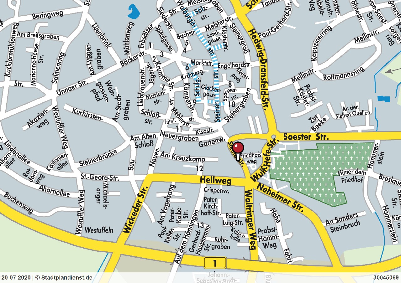 Die Wohnung befindet sich in zentraler, innenstadtnaher Lage. Schulen, Kindergärten und alle weiteren Einrichtungen des täglichen Bedarfs befinden sich in unmittelbarer Nähe. Die Entfernung zur Fußgängerzone beträgt ca. 200 m und zum Bahnhof ca. 1,2 km. Die Autobahnauffahrt zur A44 (Ruhrgebiet – Kassel) ist ca. 1,5 km entfernt.