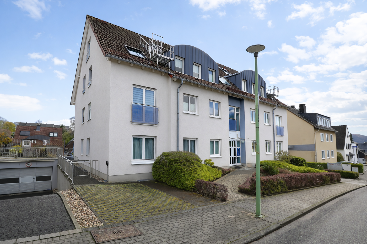 Die Lage zeichnet sich durch die Lage in einer ruhigen Seitenstraße aus, die trotzdem eine exzellente Verkehrsanbindung bietet. Sowohl die A46 als auch die A45 sind schnell zu erreichen.