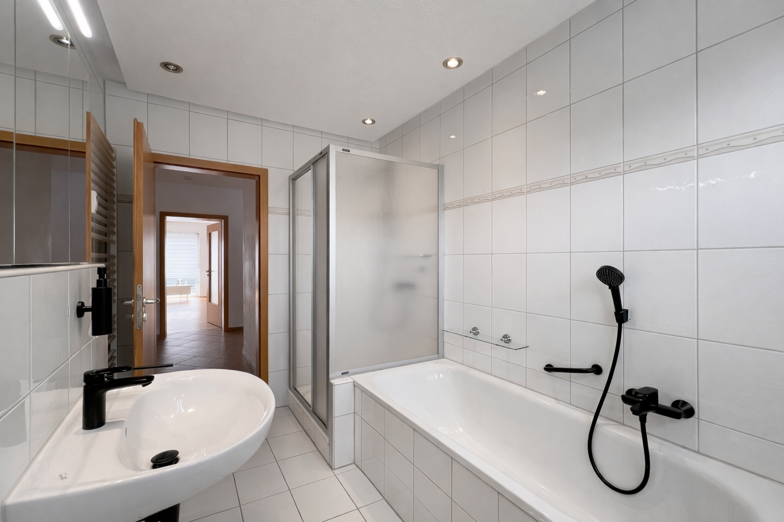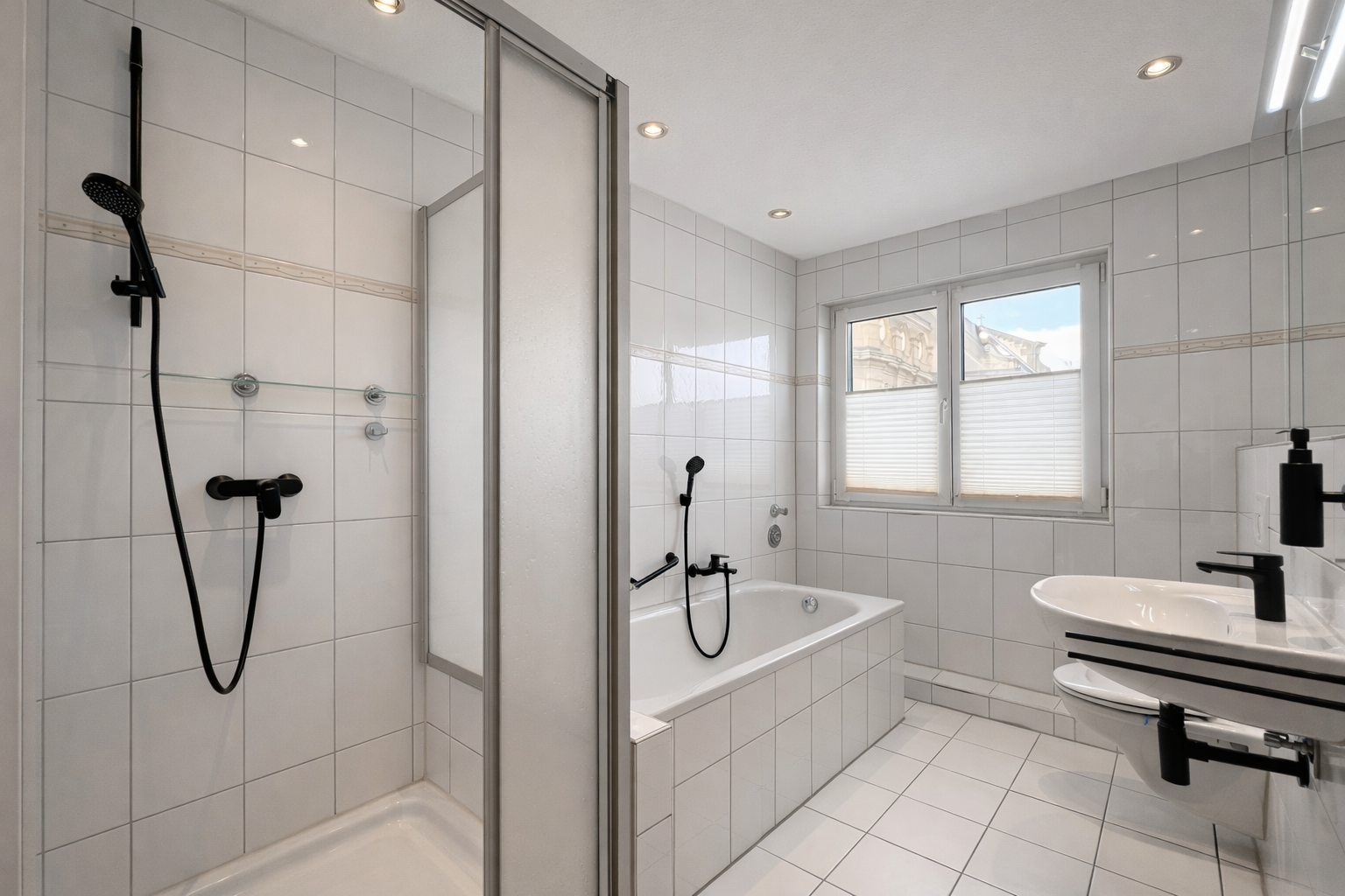 Badezimmer: Tageslichtbad mit Badewanne und Dusche