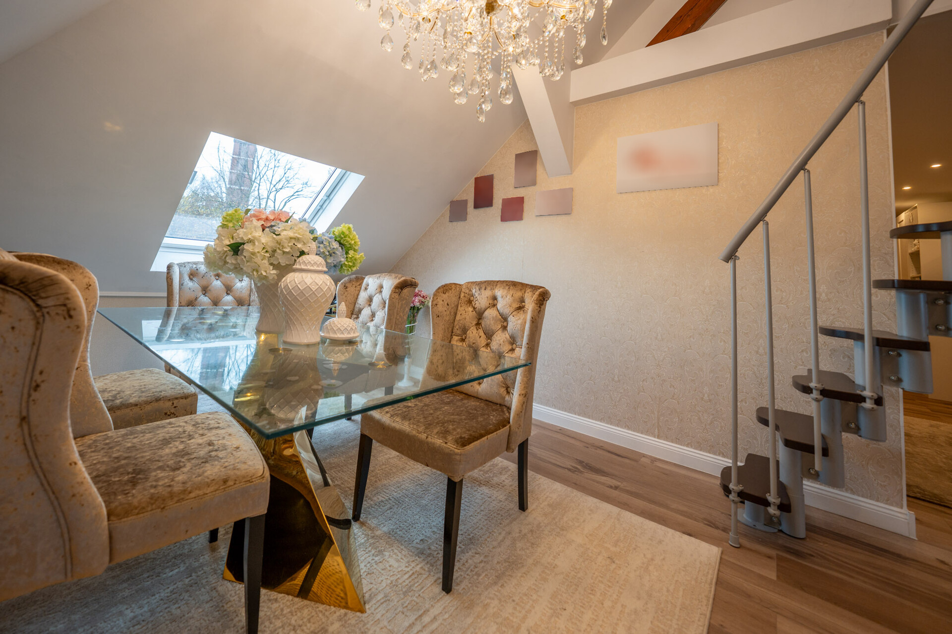 Das Wohnzimmer lädt zum Entspannen ein, das Schlafzimmer bietet Ruhe und Rückzug, und die moderne Küche lässt keine Wünsche offen. Das stilvolle Badezimmer überzeugt mit hochwertigen Armaturen und zeitlosem Design.