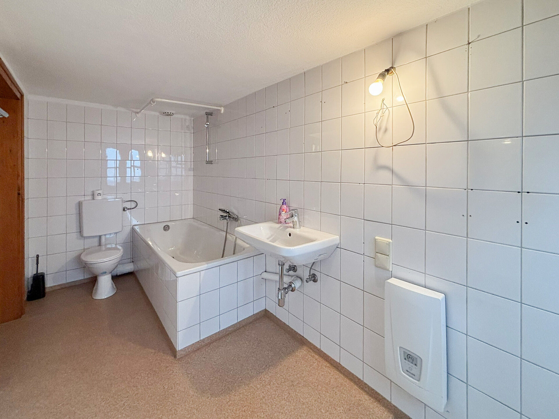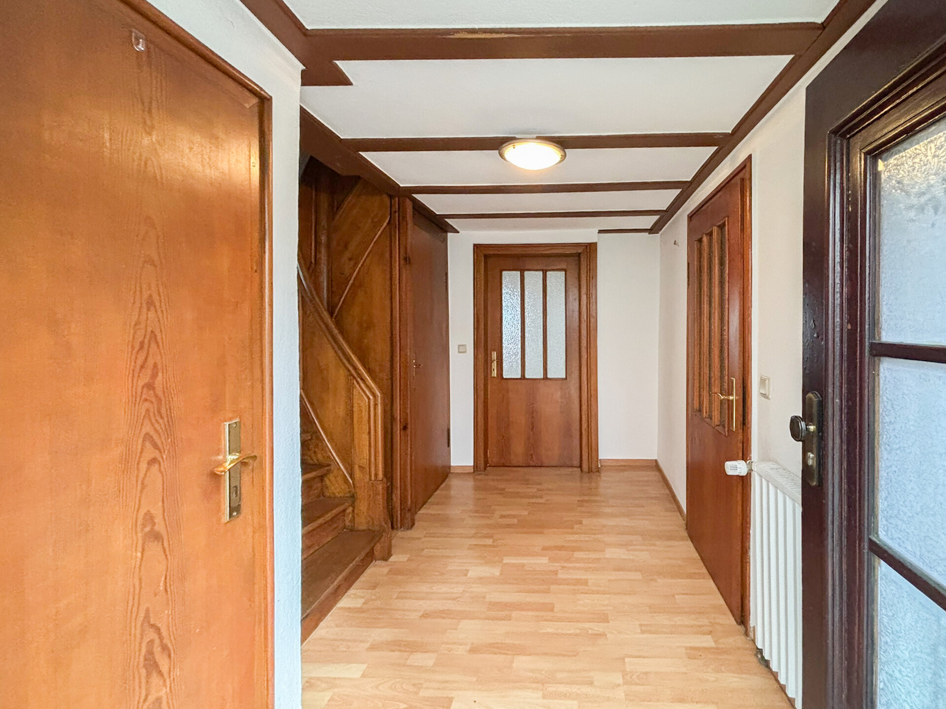 Im Inneren erwartet Sie eine gemütliche Wohnatmosphäre, die durch sichtbare Holzbalkenelemente in einigen Räumen des Erdgeschosses zusätzlich unterstrichen wird. Die Etagen sind über eine schöne, alte Holztreppe miteinander verbunden. Das Wohnzimmer bildet das Herzstück des Hauses – hier sorgt ein Kaminofen an kühleren Tagen für wohlige Wärme und schafft eine behagliche Stimmung. Ergänzt wird die Wärmeversorgung durch eine moderne Gastherme, die erst 2020 erneuert wurde. Das Badezimmer präsentiert sich in einer angenehmen Größe und ist in einem zeitlos-neutralen Stil gehalten, sodass es problemlos an individuelle Gestaltungsvorlieben angepasst werden kann. Ein weiterer Pluspunkt: Im Dachgeschoss besteht die Möglichkeit, zusätzlichen Wohnraum zu schaffen – ideal für ein weiteres Schlafzimmer. Zu beachten ist, dass die Deckenhöhe in einigen Wohnräumen teilweise nur etwa 2 Meter beträgt, was jedoch dem wohnlichen Charakter keinen Abbruch tut.