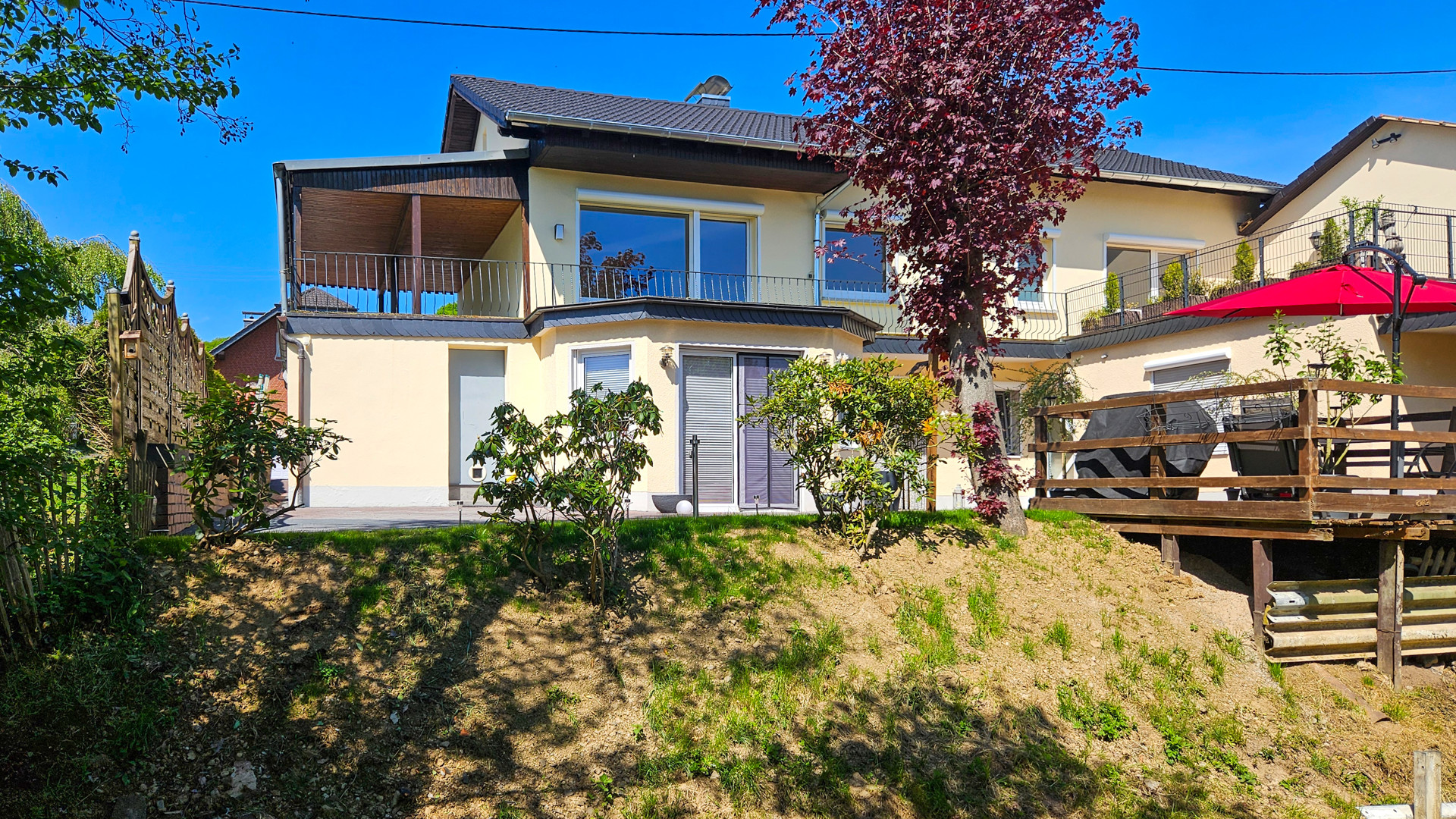 Das Mehrfamilienhaus wurde Mitte der 60er Jahre erbaut, in 2025 umfangreich modernisiert und befindet sich in einem gepflegten, soliden Zustand. Insgesamt verfügt das Objekt über drei Wohneinheiten mit einer Gesamtwohnfläche von rund 203 m² – zwei von drei Einheiten sind aktuell vermietet. Die Einheiten teilen sich folgendermaßen auf: Im Untergeschoss befinden sich ein kleines 1-Zimmer-Apartment (vermietet) mit ca. 29 m² Wohnfläche und eine Einliegerwohnung mit 2 Zimmern, Küche, Bad und einer Wohnfläche von ca. 64 m² (vermietet). In beiden Wohnungen ist die Elektrik kürzlich erneuert worden. Die großzügige Einheit im Erdgeschoss bietet eine Wohnfläche von ca. 110 m² und 3 Zimmer, Küche, neuwertiges Bad mit bodentiefer Dusche (leerstehend seit 01.11.2024). In dieser Wohnung wäre eine Kaltmiete von ca. 900€ bei Neuvermietung erzielbar. Zwei Garagen gehören ebenfalls dazu. Die dazugehörigen Einbauküchen im Appartement und der Einliegerwohnung sind ebenfalls im Kaufpreis enthalten. Das Objekt erzielt aktuell eine jährliche Nettokaltmiete in Höhe von € 12.060,-