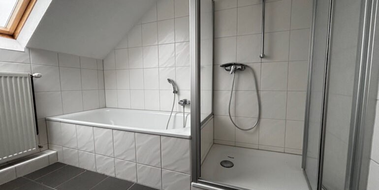 - Badausstattung: Dusche, Badewanne, Fenster im Badezimmer