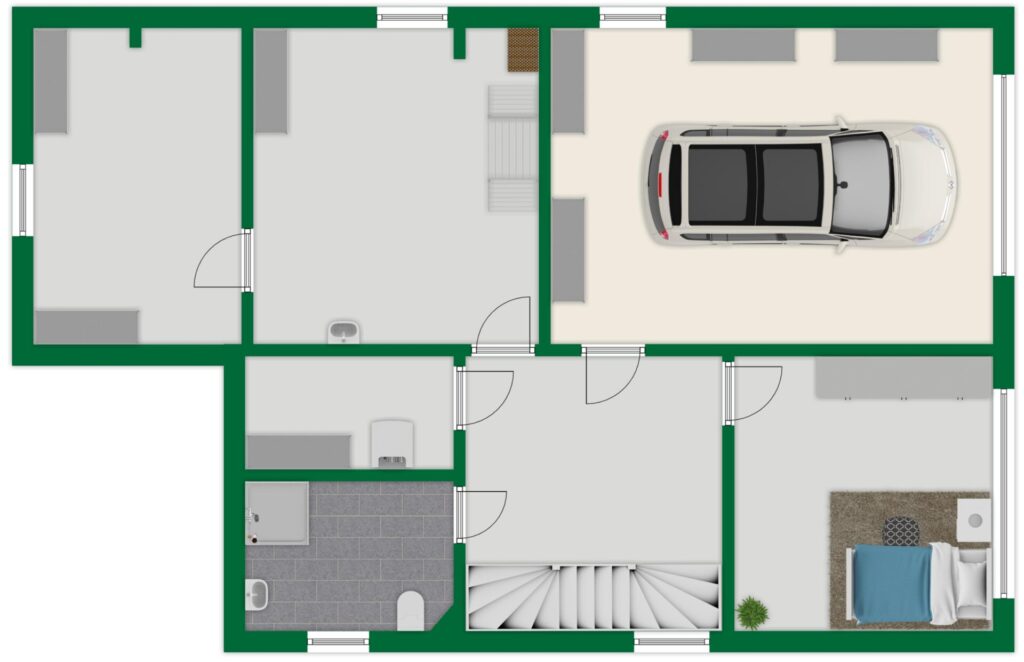 Highlight der Souterrainetage ist sicherlich die riesige innenliegende Garage, in der neben einem sehr großen PKW auch problemlos Gartengeräte (bereits vorhanden!) und Werkzeug gelagert werden können. Besonders praktisch: Von der Garage aus können Sie Ihre Einkäufe ohne Umwege an den jeweiligen Bestimmungsort bringen!