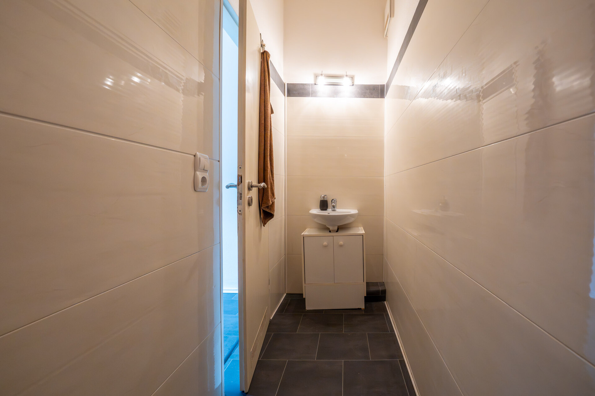 Beim Betreten der Wohnung empfängt Sie der Eingangsbereich mit angrenzendem Gäste WC.