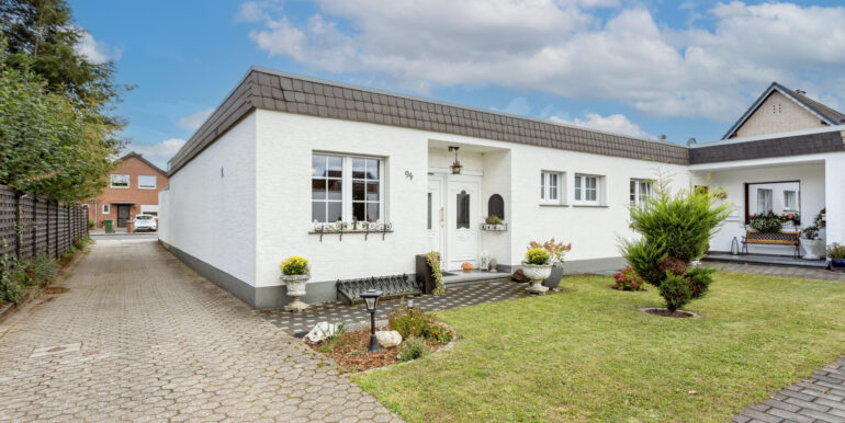 Dieser sehr gepflegte, fast barrierefreie Bungalow überzeugt durch seine durchdachte Raumaufteilung, die helle Wohnatmosphäre und den besonderen Charme eines Innenhofs. Die 100 m² Wohnfläche verteilen sich auf insgesamt vier Zimmer: ein Wohnzimmer und drei Schlafzimmer, wobei zwei davon variabel als Esszimmer, Büro oder Kinderzimmer genutzt werden können.