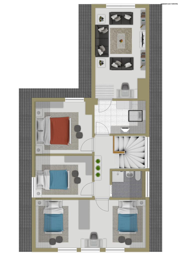 Die Erdgeschossebene wird aktuell vollständig als Wohnfläche genutzt. Bitte beachten Sie, dass gemäß ursprünglicher Planung etwa 60 % dieser Fläche als Gewerbefläche ausgewiesen sind. Eine Nutzungsänderung ist für die dauerhafte Wohnnutzung erforderlich, eröffnet aber gleichzeitig Chancen für kreative Lösungen oder Investitionspotenzial.