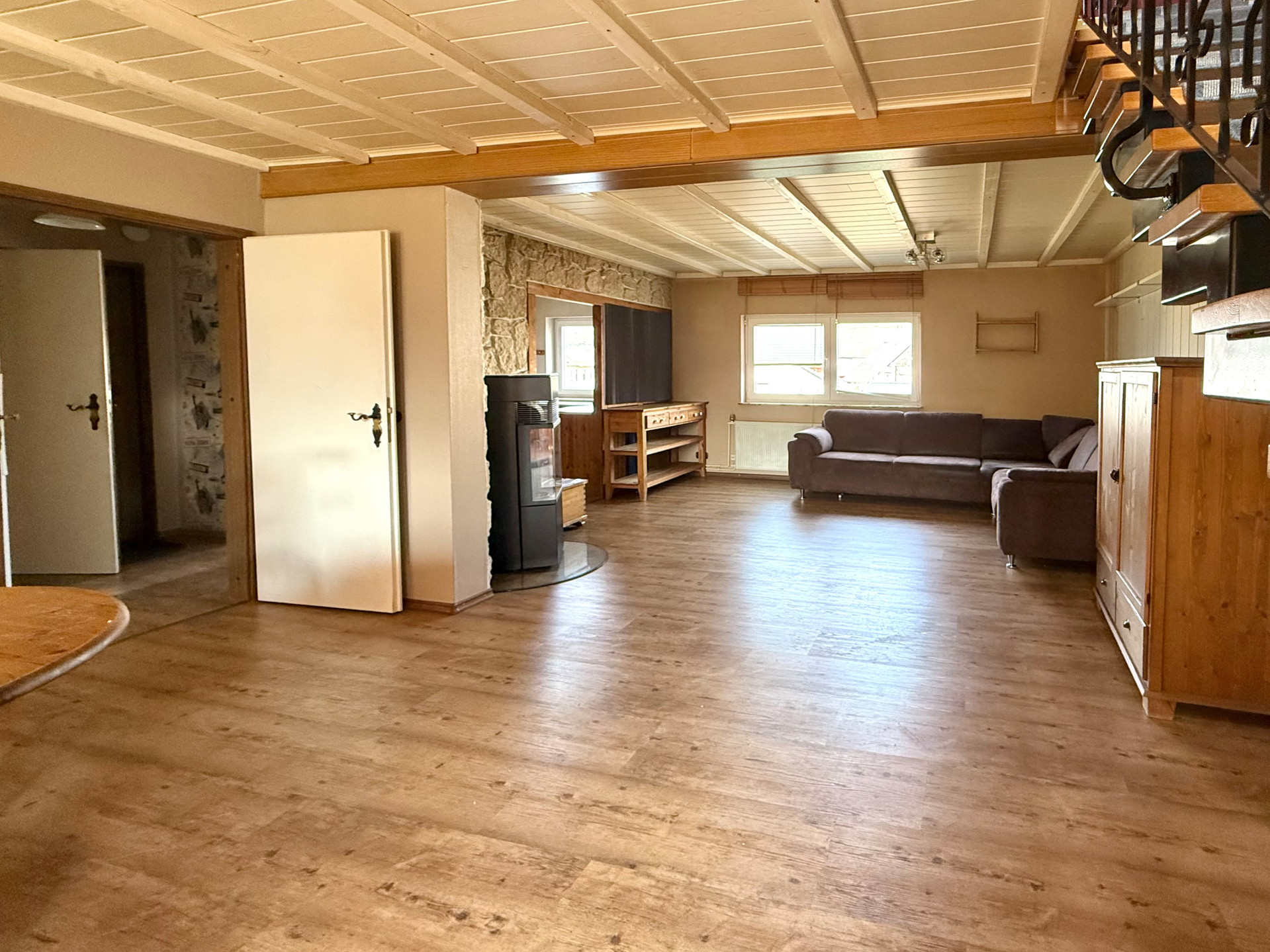Das ehem. Bauernhaus wurde um ca. 1920 auf einem rd. 425 m² großen Grundstück errichtet und später um weiteren Wohnraum ergänzt. Heute bietet es zwei potenzielle Wohneinheiten, die aktuell miteinander verbunden sind, aber mit entsprechenden Umbaumaßnahmen separat nutzbar wären – Ideal für einen Mehgenerationenhaushalt oder zum Wohnen und/oder Vermieten. Der rechte, ursprüngliche Hausteil befindet sich in renovierungsbedürftigem Zustand und stellt einen Wohn-/Essbereich, eine Küche, ein Bad sowie ein Schlafzimmer zur Verfügung. Der linke Teil ist gepflegt und sofort beziehbar. Diese Einheit besitzt 2 Schlafzimmer, ein Duschbad, eine Ankleide, einen geräumigen Wohn-/Essbereich mit angrenzendem Wintergarten, eine Küche samt EBK sowie zwei Abstellräume. Das pflegeleichte Grundstück bietet eine große Terrasse im hinteren Bereich sowie ein Gartenhaus. Zwei separate Stromzähler sind vorhanden. Der linke Teil ist über das gemeinsame Treppenhaus im Obergeschoss oder über den Wintergarten zugänglich. Das Haus ist teilunterkellert – im Ursprungsteil befindet sich ein Bruchsteinkeller mit drei Nutzräumen. Als Parkmöglichkeit stehen zwei Garagen und 1-2 Stellplätze vor dem Objekt bereit.