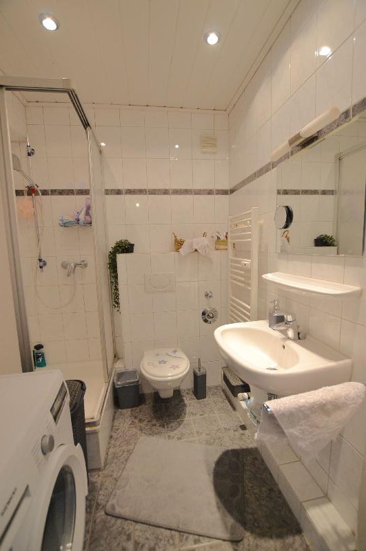 Die Warmwasseraufbereitung erfolgt über eine Gaszentralheizung. Die komplette Wohnung wurde einheitlich mit hellen Fliesen ausgelegt, das Badezimmer ist deckenhoch gefliest. Zu der Wohnung gehört ein Kellerraum.