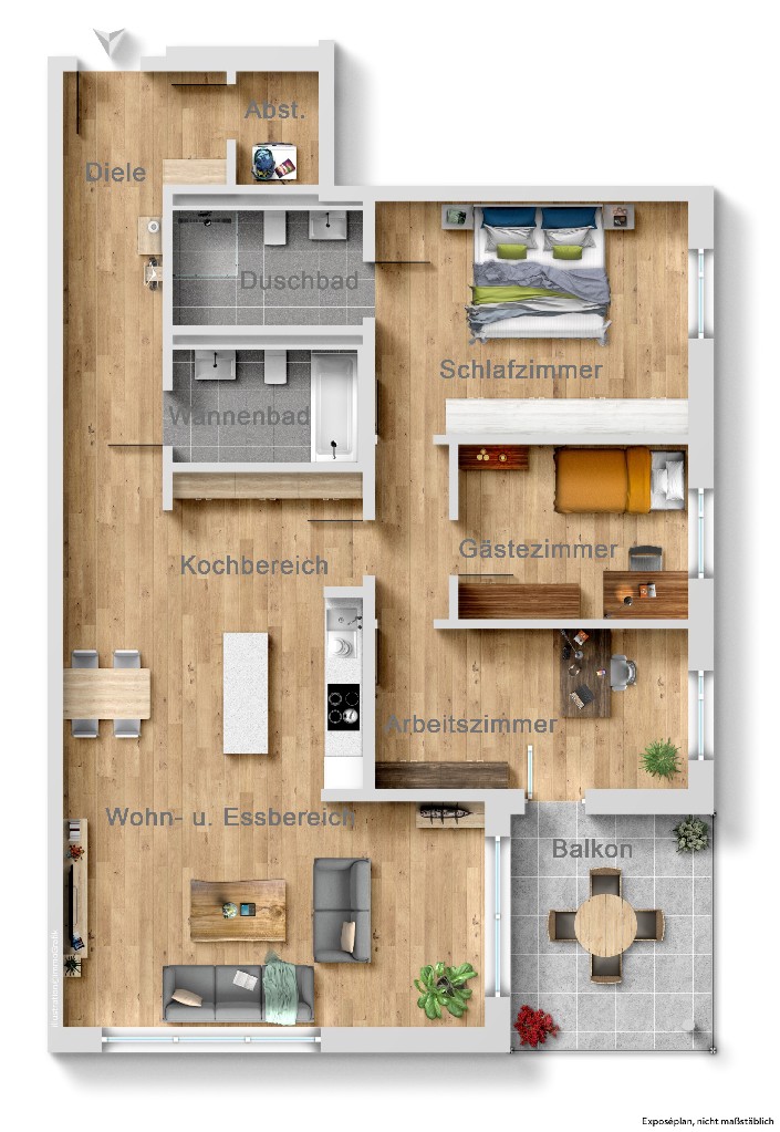 * Auf Wunsch des Vermieters suchen wir für diese schöne Wohnung maximal einen 4-Personenhaushalt. Bitte nur solvente, berufstätige oder pensionierte Personen, keine WGs.