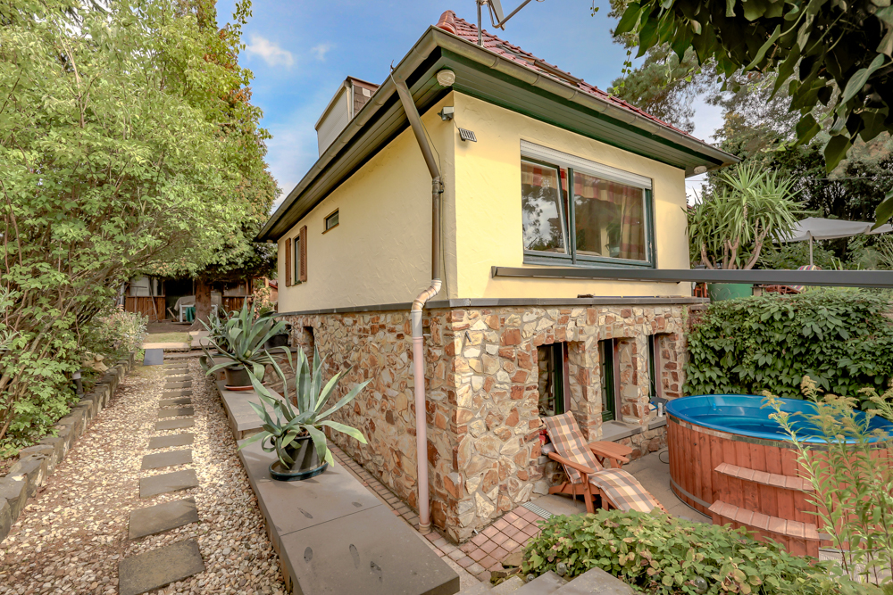 Der Außenbereich ist ein echtes Highlight: Beide Terrassen laden zum Verweilen ein, während der große, eingewachsene Garten viel Privatsphäre bietet. Hier können Kinder ungestört spielen, Hobbygärtner ihre Ideen verwirklichen oder Sie genießen einfach die Ruhe. Ebenfalls erwähnenswert ist das große Gartenhaus mit integrierter Sauna! Für Ihre Fahrzeuge stehen eine Garage sowie zwei Stellplätze im Freien bereit.
