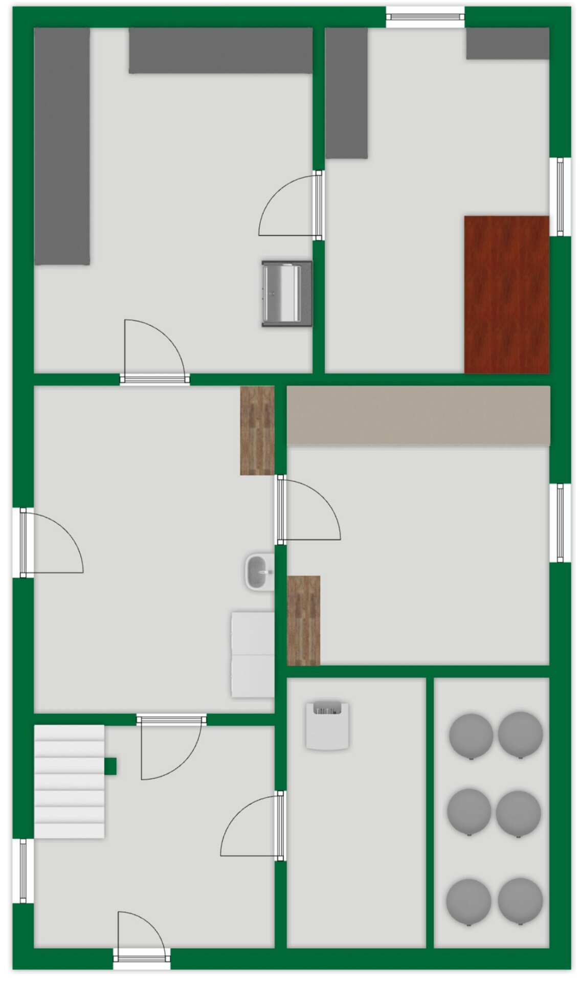 Das derzeit separierte Zimmer kann mit wenig Aufwand wieder den übrigen Räumen im Obergeschoss zugänglich gemacht werden.