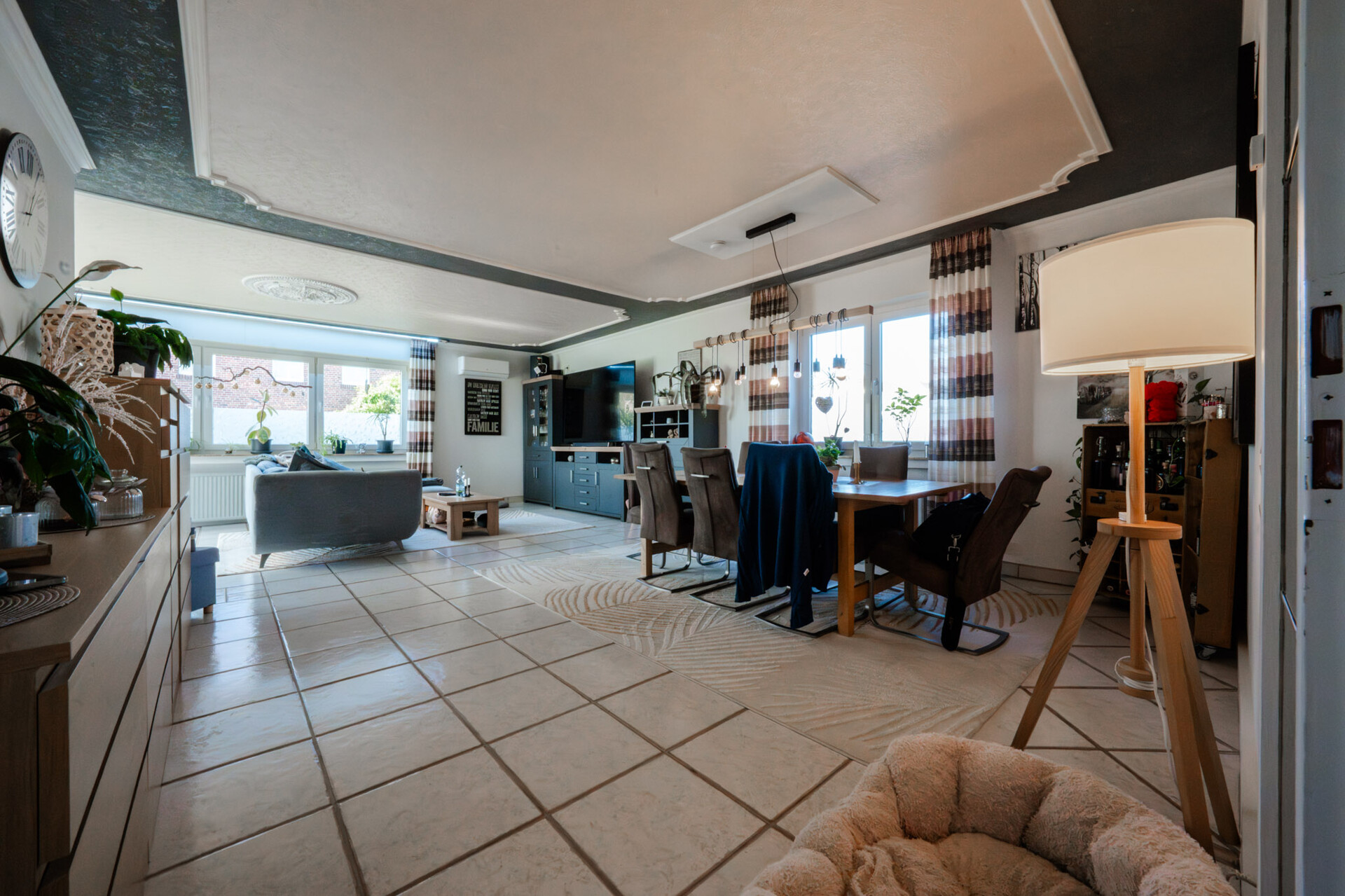 Hier beginnt jeder Tag mit einem Lächeln. In diesem liebevoll modernisierten Bungalow aus dem Jahr 1978 verschmelzen Licht, Raum und Wärme zu einem Ort, an dem sich die ganze Familie wohlfühlen kann. 142 m² Wohnfläche offenbaren helle, einladende Zimmer, in denen Kinder spielen, Eltern arbeiten und gemeinsame Momente entstehen können.