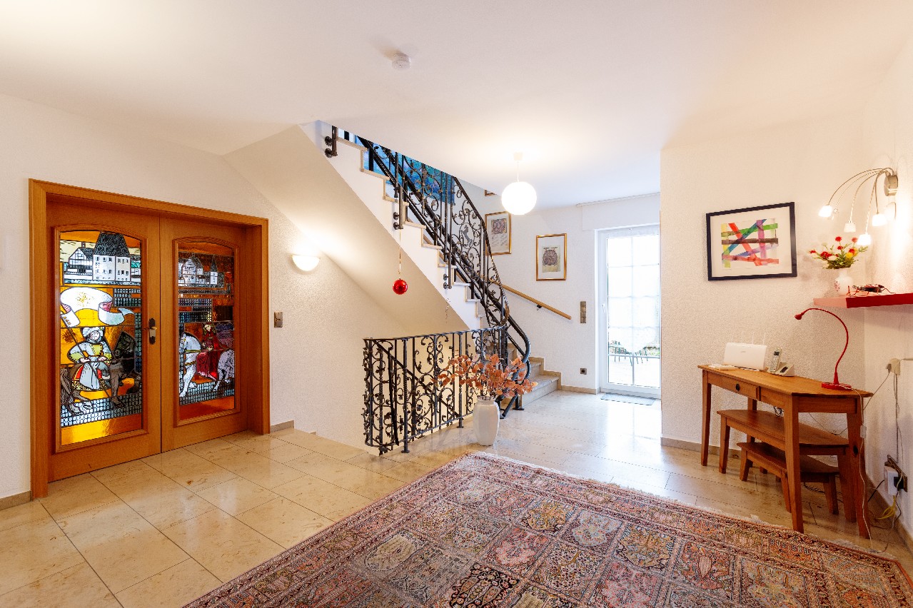 Mit einer Wohnfläche von ca. 232 m² sowie zusätzlichen ca. 118 m² Nutzfläche bietet das Haus außergewöhnlich viel Platz für Familien, Paare mit Homeoffice-Bedarf oder Menschen, die Wohnen und Arbeiten harmonisch verbinden möchten. Die durchdachte Raumaufteilung mit insgesamt fünf Zimmern, darunter drei komfortable Schlafzimmer (das Elternschlafzimmer mit en-Suite Bad und Balkon), schafft ideale Voraussetzungen für gemeinsames Familienleben ebenso wie für individuelle Rückzugsorte. Zwei stilvolle Bäder und ein Gäste-WC sorgen für Alltagstauglichkeit und Komfort. Zusätzlich steht Ihnen auf der zweiten Wohnebene noch ein Hauswirtschaftsraum zur Verfügung, der auch als Arbeits- oder Gästezimmer sowie als weiteres Kinderzimmer genutzt werden kann.