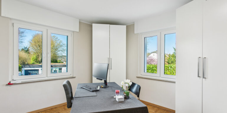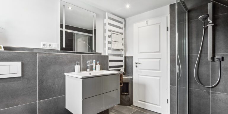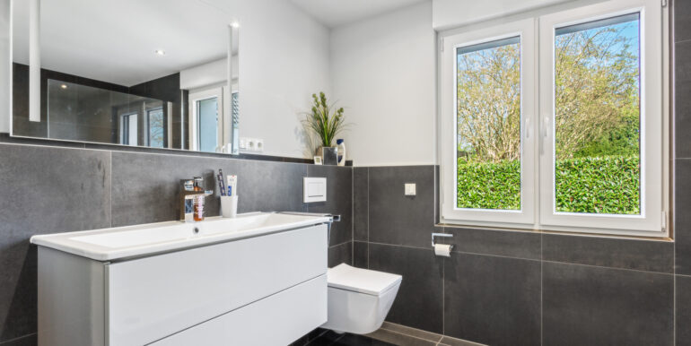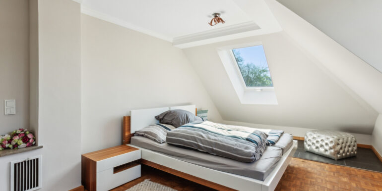 Im Dachgeschoss befinden sich zwei bis drei Schlafzimmer sowie ein hochwertig ausgestattetes Badezimmer mit ebenerdiger Dusche – perfekt für Familien oder Paare, die sich Raum für Gäste oder ein Home-Office wünschen.