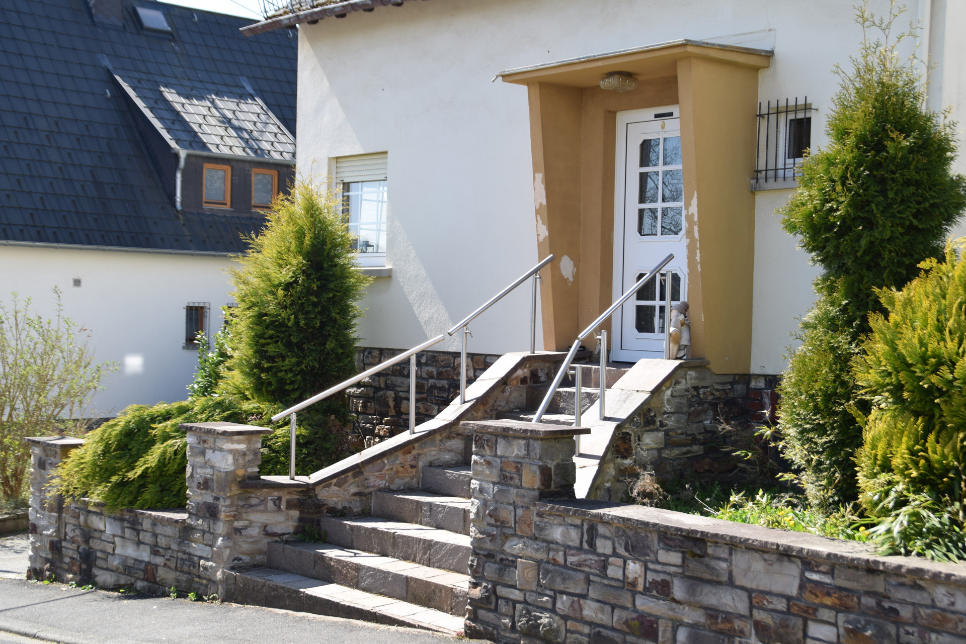 Das massiv gebaute Haus steht auf einem großzügigen Grundstück von ca. 713 m² und verfügt über eine Wohnfläche von ca. 120 m². Diese verteilt sich auf vier gut geschnittene Zimmer und bietet viel Raum für individuelle Wohnideen. Besonders hervorzuheben ist die einladende Terrasse – ein perfekter Ort für gesellige Abende oder entspannte Stunden im Freien.