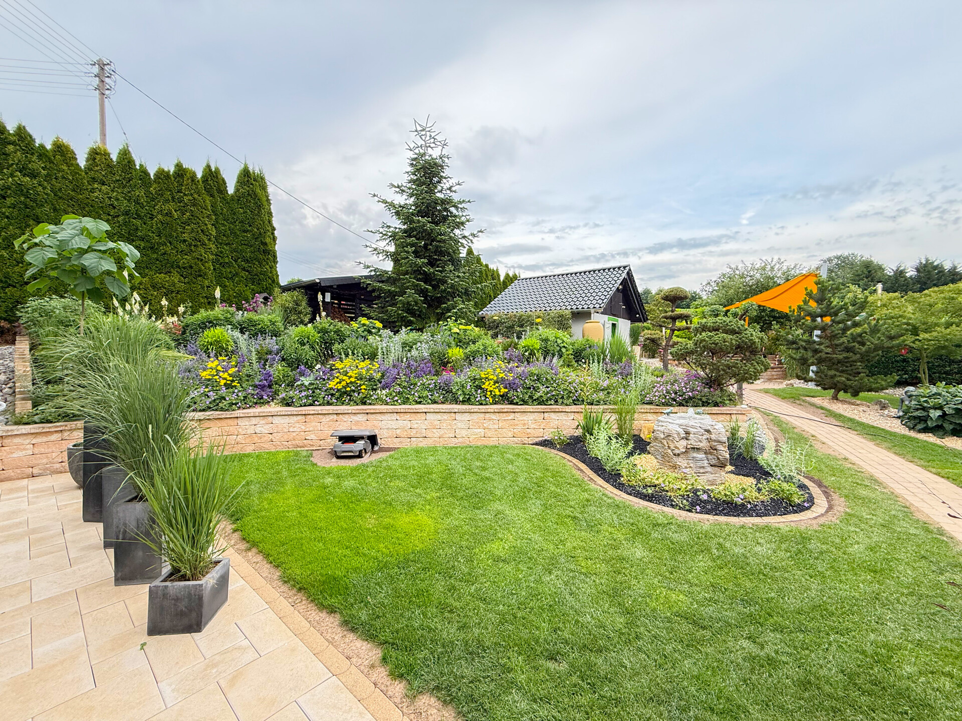Im Erdgeschoss befinden sich der Eingangsbereich, ein Wohnzimmer mit Pelletofen sowie der Zugang zum Anbau. Ab hier beginnt eine separate, derzeit vermietete Wohneinheit mit mehreren hellen Wohn- und Schlafräumen, Küche, Badezimmer, Gäste-WC und einem Abstellraum mit eigenem Hauseingang. Ein besonderes Highlight ist der Zugang zur sonnigen Terrasse, die einen wunderbaren Blick in den professionell angelegten Garten eröffnet. Das Grundstück wurde mit viel Sorgfalt gestaltet und bietet ein echtes Gartenparadies mit zwei Teichen – darunter ein beeindruckender Koi-Teich – sowie einem charmanten Gartenhaus. Die harmonische Bepflanzung und die hochwertige Gestaltung schaffen eine außergewöhnliche Wohlfühlatmosphäre.