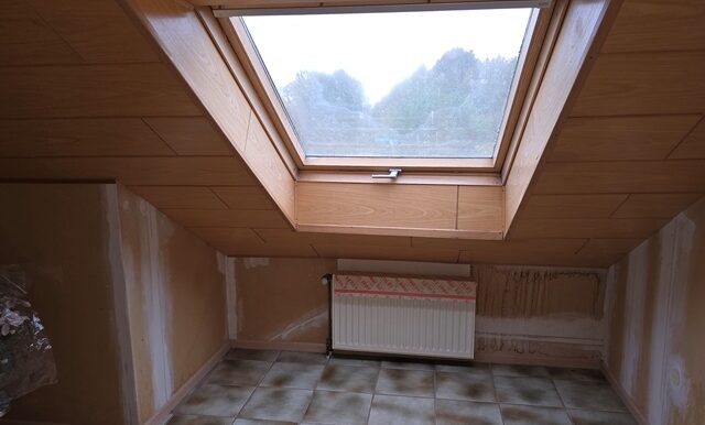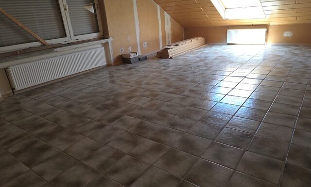 Im Erdgeschoss mit ca.128m² befinden sich ein großes Schlafzimmer, eine Diele, Küche, ein Gäste-WC sowie ein Bad mit Wanne und Dusche. Der großzügige Wohn-Essbereich – 2 hintereinander liegende Zimmer – mit ca. 63 m², offenem Kamin und direktem Zugang zur Terrasse mit Markise und Garten, lädt zum Verweilen ein. Im zu Wohnzwecken genehmigtem Obergeschoss mit ca.95m² wurde der Ausbau bereits begonnen. Eine große Diele mit Zugang zum Spitzboden sowie vier Räume und eine für eine Küche vorgesehene Fläche mit allen Anschlüssen und Abstellraum bieten viel Potenzial. Bad mit Wanne und Dusche, 2 Waschbecken, Gäste-WC mit Anschluss für Waschmaschine und Abstellraum. Große Dachflächenfenster sorgen für helle, freundliche Räume.