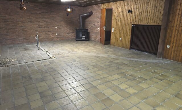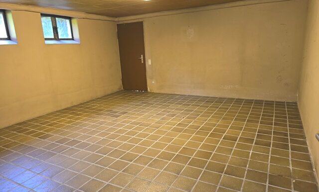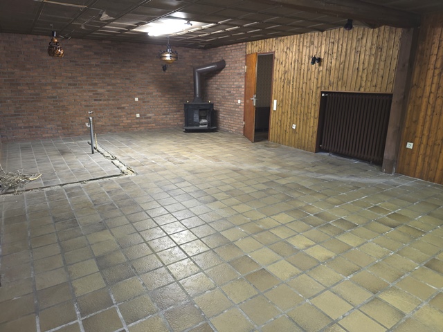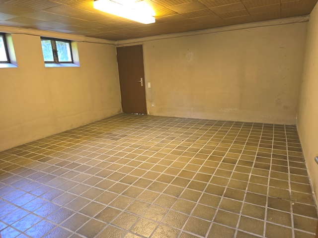 Auch das Kellergeschoss ist vollständig ausgebaut und gefliest. Neben einem Hauswirtschaftsraum gibt es ein Gäste-Schlafzimmer sowie einen Partyraum mit Kaminofen. Ein weiteres Bad mit Dusche und Waschbecken ergänzt das Angebot.