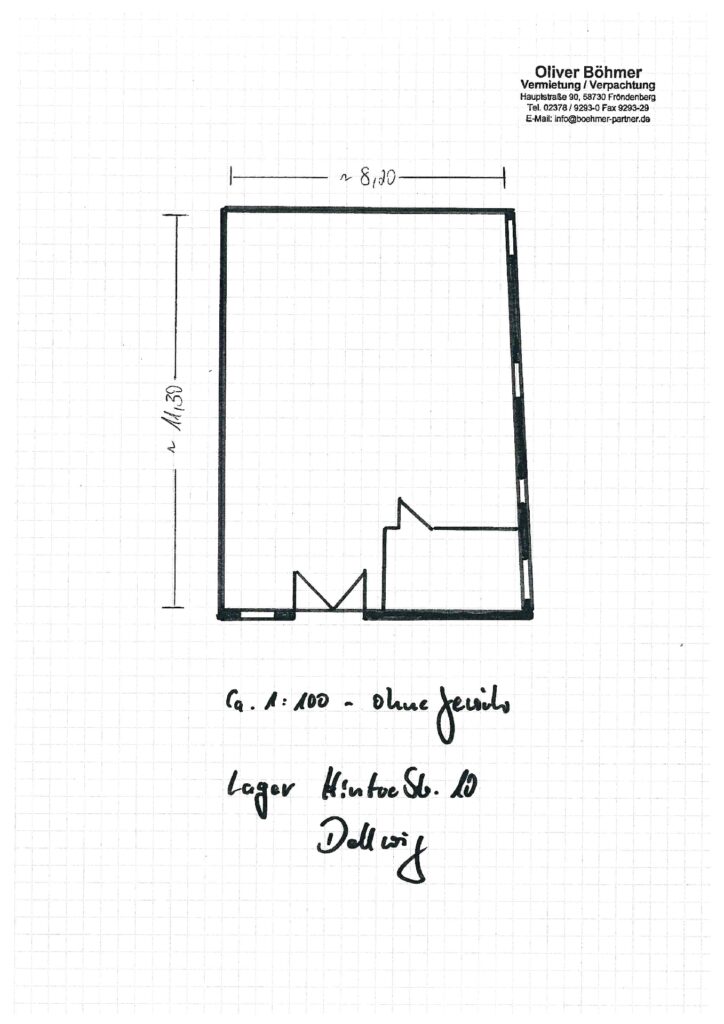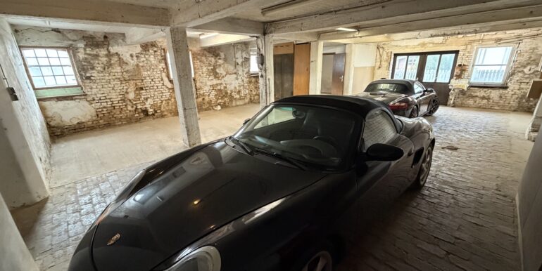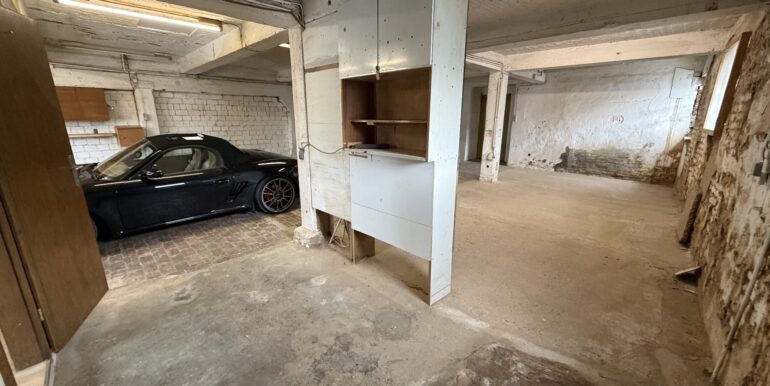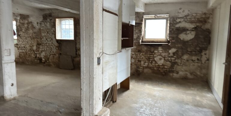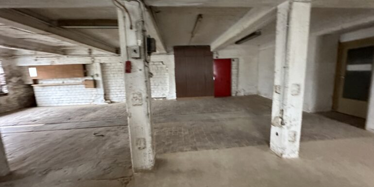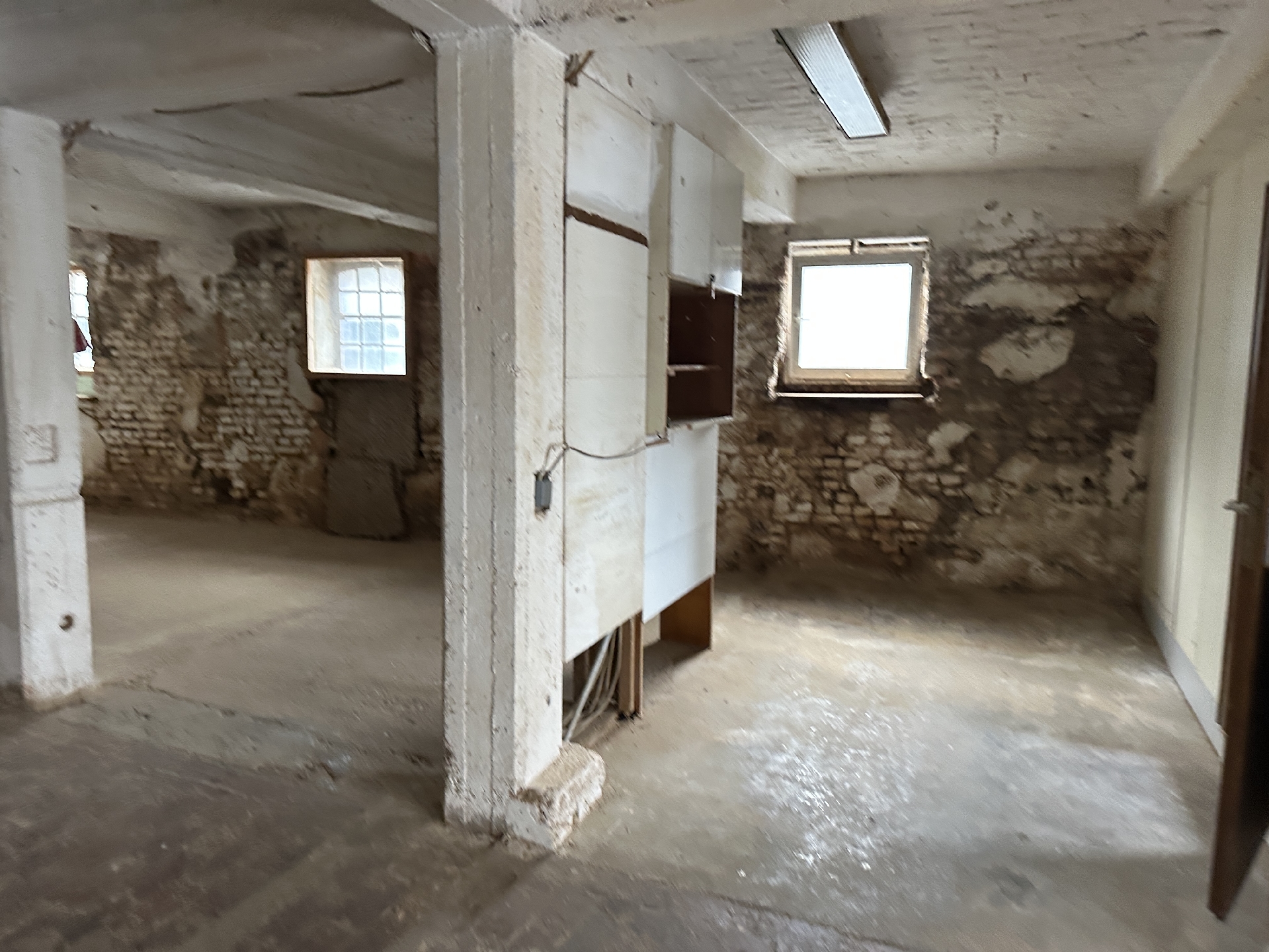 Unsaniert, alt und unbeheizt. Die gesamte Fläche beträgt ca. 96 m², wovon ein kleiner Raum von knapp 9 m² abgeteilt wurde, Tageslicht ist vorhanden. Die Höhe unter den Betonträgern ist ca. 2,4 m, dazwischen 2,70 m. Bei Bedarf kann noch 1 Außenstellplatz zusätzlich angemietet werden.