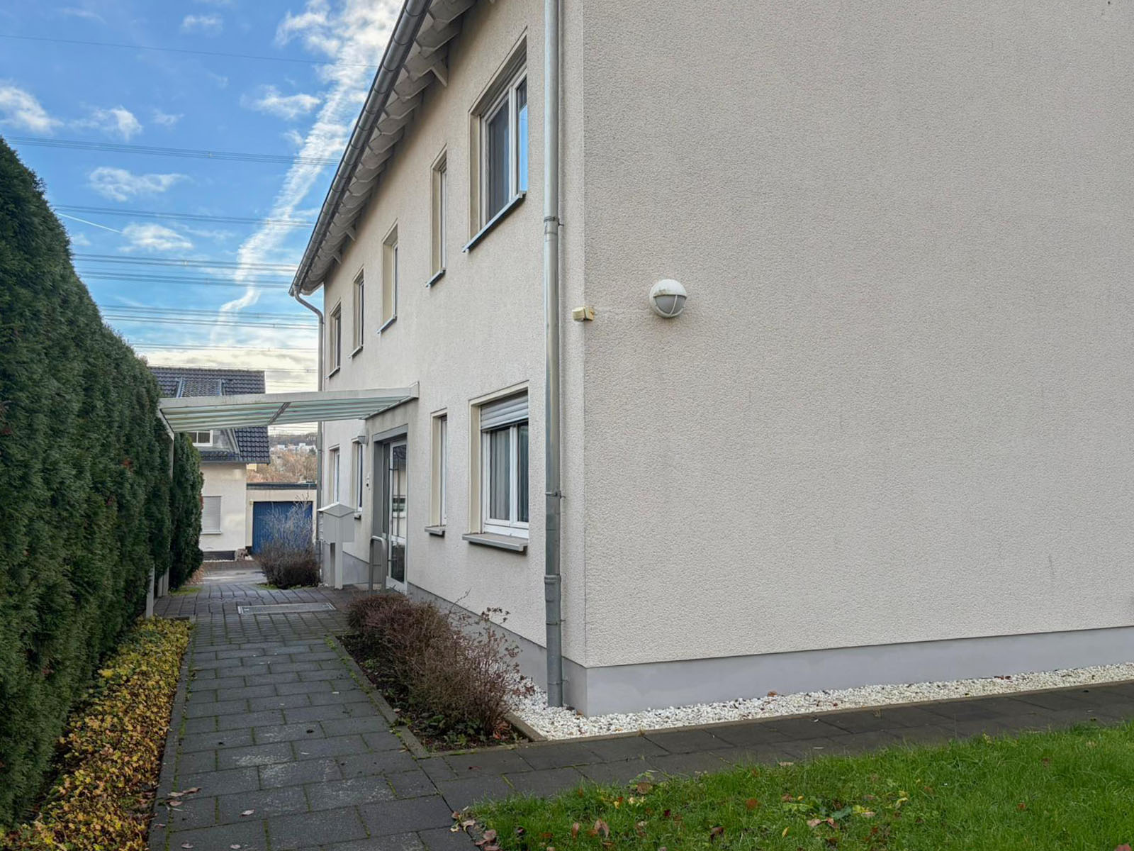 Diese gepflegte und solide 3-Zimmer-Etagenwohnung, die im Jahr 2004 auf einem ca. 717 m² großen Grundstückerbaut wurde, bietet eine ideale Kombination aus ruhiger Lage und optimaler Anbindung an die Stadt Bonn. Die Wohnung überzeugt mit einer Wohnfläche von ca. 78 m² und verfügt über ein geräumiges Wohn-/ Esszimmer mit Zugang zum Balkon, eine Küche, ein Schlafzimmer, ein Büro, ein Tageslichtbad mit Dusche, ein Gäste WC und eine Abstellkammer. Im Keller stehen gemeinschaftliche Waschräume zur Verfügung; der Stromverbrauch wird mieterspezifisch über separate Zähler erfasst.