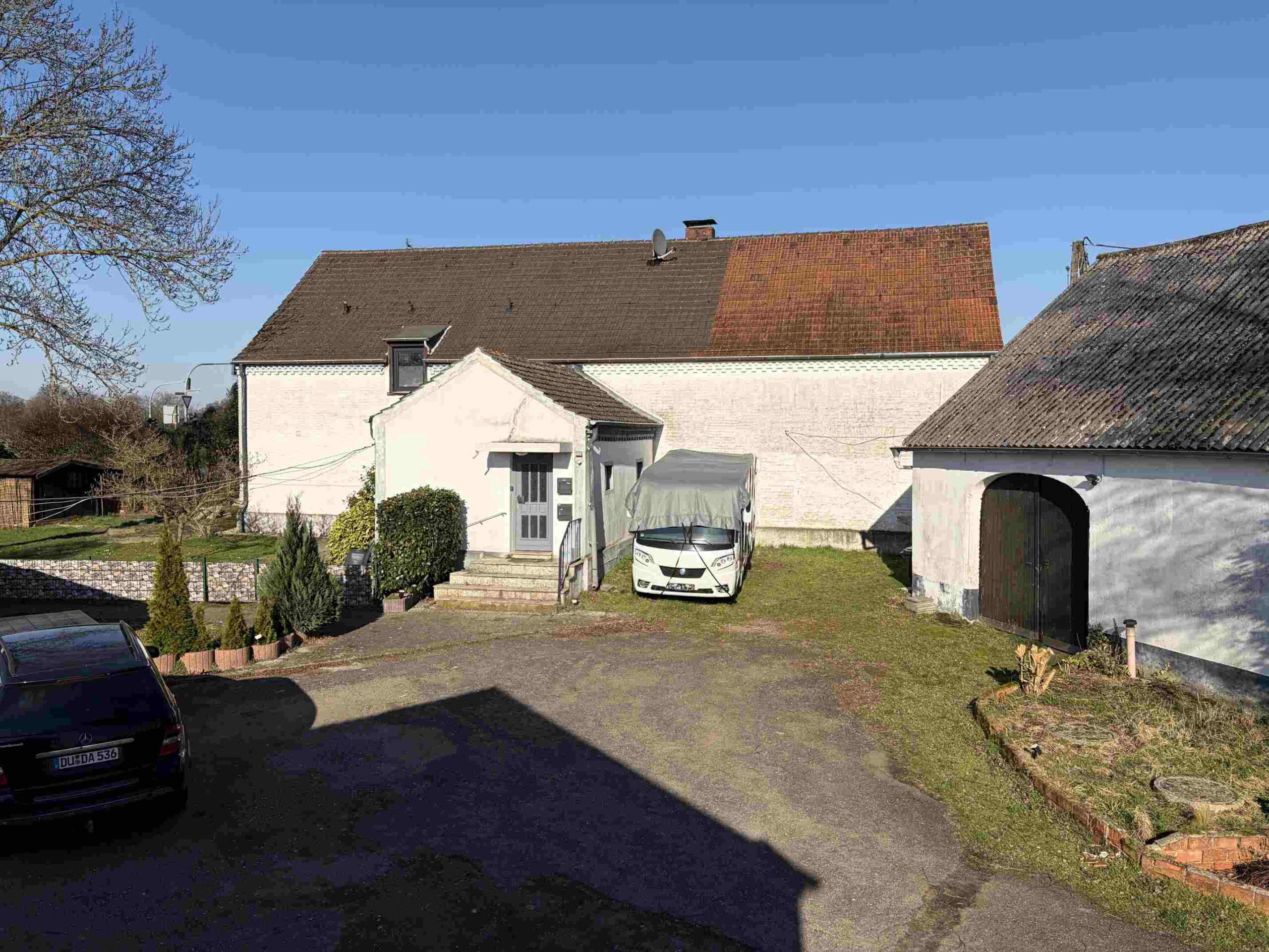 Angeboten wird ein Zweifamilienhaus mit zwei recht ähnlich geschnittenen Wohnungen und insgesamt ca. 172 m² Wohnfläche in Moers-Kapellen. Das Grundstück ist über ca. 2.600 m² groß und verfügt über verschiedene Garagen, Scheunen, Schuppen und Stellplatzmöglichkeiten.