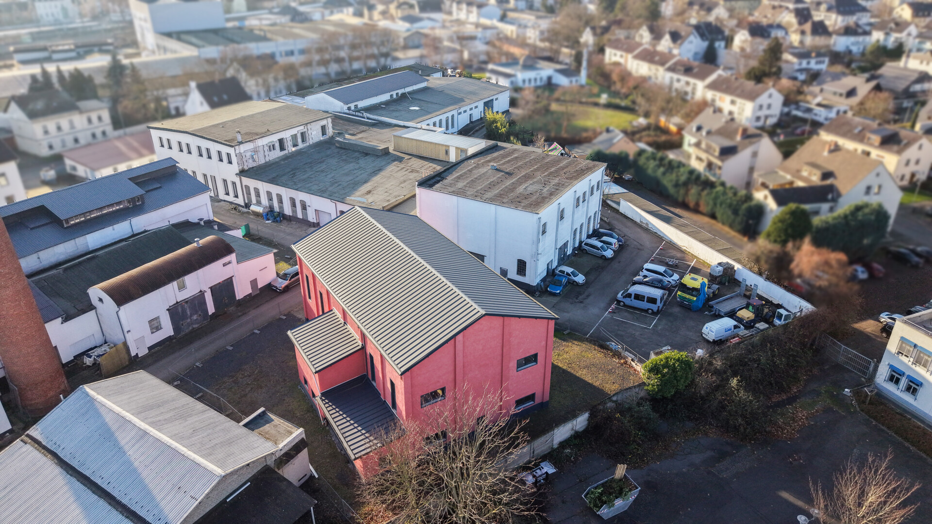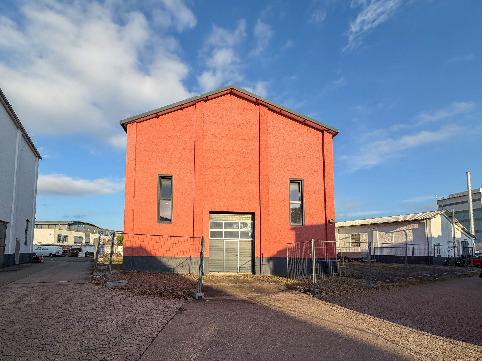 Die Lagerhalle befindet sich in einem etablierten Gewerbe- und Industriebereich der Stadt Neuwied im nördlichen Rheinland-Pfalz.