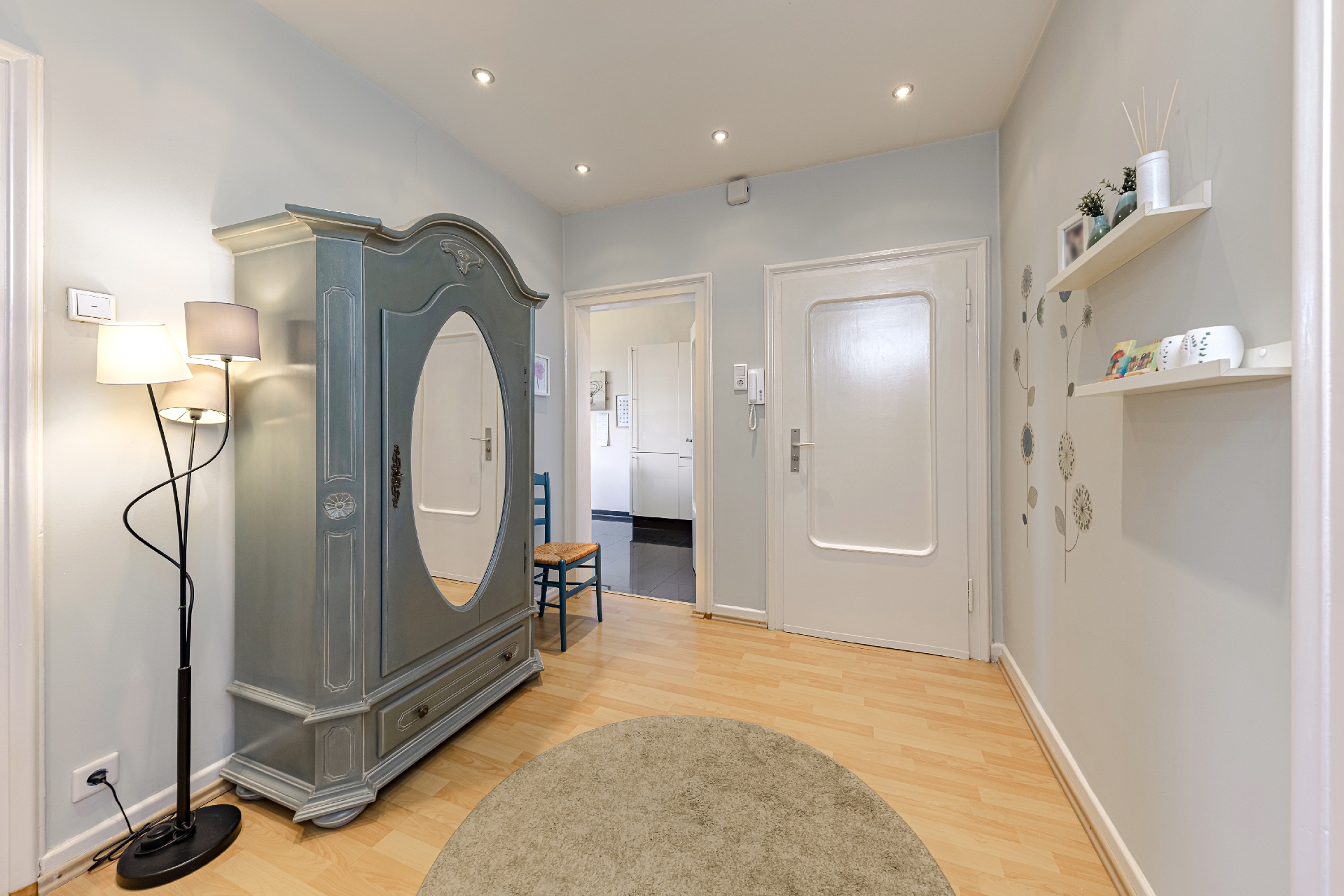 Diese wunderschöne Eigentumswohnung befindet sich in einem stilvollen Reihenensemble aus dem Jahr 1950, bestehend aus vier ruhigen Dreifamilienhäusern. Die kleine, harmonische Eigentümergemeinschaft sorgt für ein angenehmes und gepflegtes Wohnumfeld. Die Wohnung selbst besticht durch ihren Altbaucharakter mit hohen Decken, großzügigen Raumproportionen und einem lichtdurchfluteten Wohn- und Essbereich, der durch eine Schiebetür flexibel trennbar ist. Vom Wohnzimmer mit Balkon eröffnet sich eine beeindruckende Aussicht über Wuppertal, während die stilvolle Wohnküche mit Kücheninsel zusätzlichen Komfort und modernes Ambiente bietet. Im gemeinschaftlich nutzbaren Garten steht der Wohnung ein eigener, liebevoll gestalteter Bereich mit Terrasse zur Verfügung – ein besonderer Rückzugsort zum Entspannen und Genießen.
