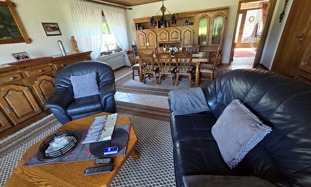 Das Haus bietet auf einer Wohnfläche von ca. 118 m² ausreichend Platz für Familien oder Paare, die Wert auf großzügiges Wohnen und ein naturnahes Umfeld legen. Das ca. 710 m² große Grundstück besticht durch seine gepflegten Außenanlagen und dem Blick auf den Buchholzer Wald, der eine besondere Wohnqualität garantiert. Der Bungalow verfügt über vier gut geschnittene Zimmer, darunter ein großzügiges Wohnzimmer mit ca. 39 m², das dank großer Fensterflächen viel Licht erhält und direkten Zugang zur großen, überdachten und gefliesten Terrasse/Garten bietet. Die Küche ist funktional gestaltet, verfügt über einen praktischen Abstellraum und bietet ebenfalls einen direkten Ausgang ins Grüne. Ein Gäste-WC ergänzt das Raumangebot im Erdgeschoss. Das Haus bietet im Souterrain 2 helle Räume, einen Waschkeller mit Dusche und auch einen ca. 39m² großen, wohnlich ausgebauten Partyraum. Eine großzügige Abböschung sorgt hier für Tageslicht ideal auch als Büro oder für Feiern mit Freunden und Familie.