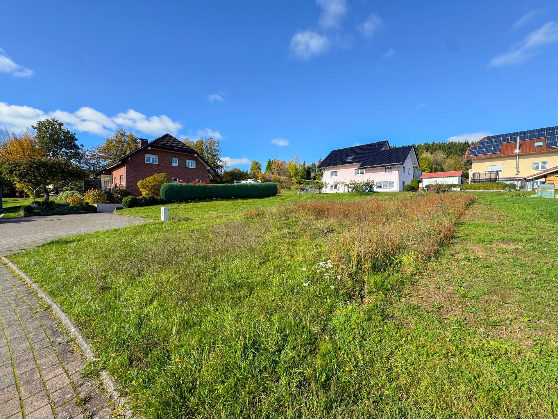 Dieses ansprechende Baugrundstück mit einer Fläche von 698 m² befindet sich in einer ruhigen und naturnahen Umgebung und bietet gleichzeitig eine gute Anbindung an die anliegenden Ortschaften. Das Grundstück liegt in leichter Hanglage, ist voll erschlossen und überzeugt durch seine idyllische Lage. Gemäß Bebauungsplan ist die Errichtung von allgemeinen Wohngebäuden mit bis zu zwei Vollgeschossen zulässig. Die zulässige Grundflächenzahl (GRZ) beträgt 0,4 und die Geschossflächenzahl (GFZ) 0,8. Zugelassen sind sowohl Satteldächer als auch Walmdächer, mit einer Mindestdachneigung von 15°.