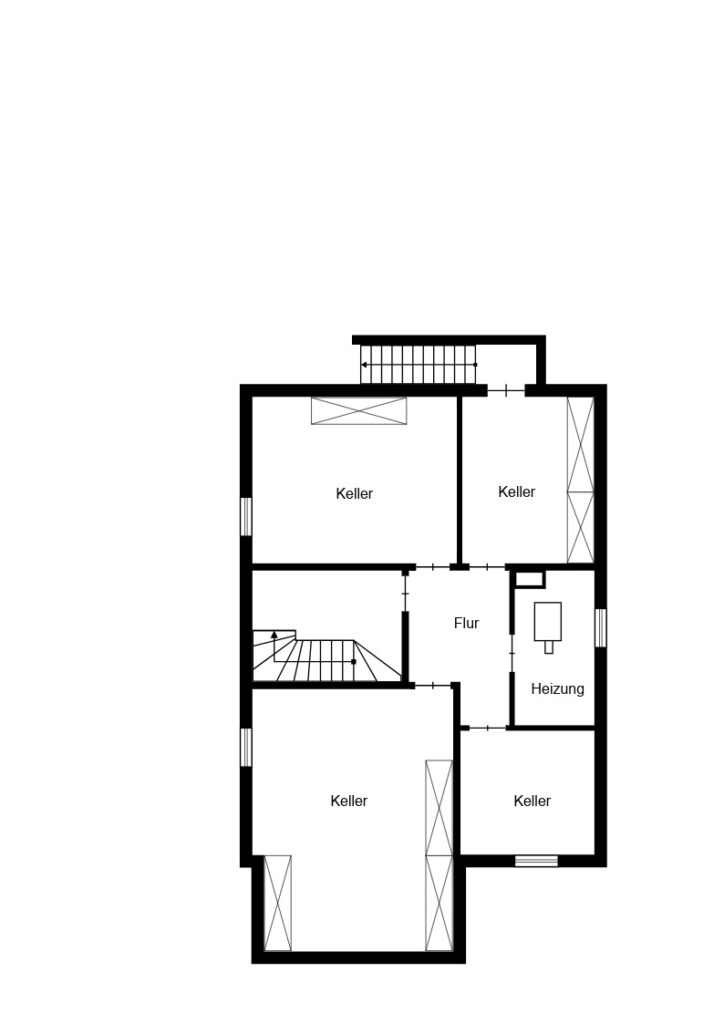 Das Gebäude ist voll unterkellert und bietet neben einer Waschküche und dem Heizungsraum mehrere Abstellräume. Hervorzuheben ist außerdem ein großzügiger Bereich, der früher als Partykeller genutzt wurde.