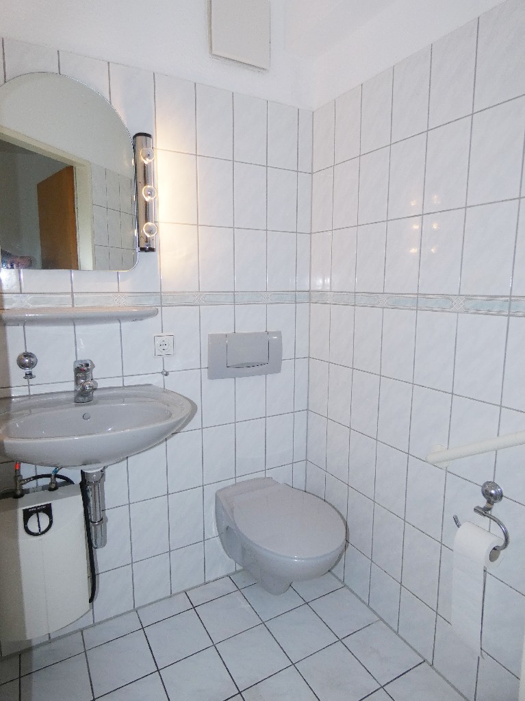 * Badezimmer und Gäste-WC hellgrau gefliest