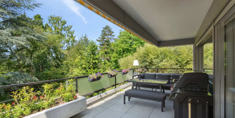 Das Herzstück der Wohnung bildet das helle Wohnzimmer mit direktem Zugang zum ersten Balkon. Angrenzend an das Wohnzimmer befindet sich die offen gestaltete, moderne Küche, die nicht nur durch Design und Funktionalität überzeugt, sondern zusätzlich über einen weiteren eigenen Balkon verfügt. Sowohl im Wohnzimmer als auch in der Küche sorgen integrierte Jalousien für angenehmen Sonnenschutz und ein Plus an Privatsphäre.