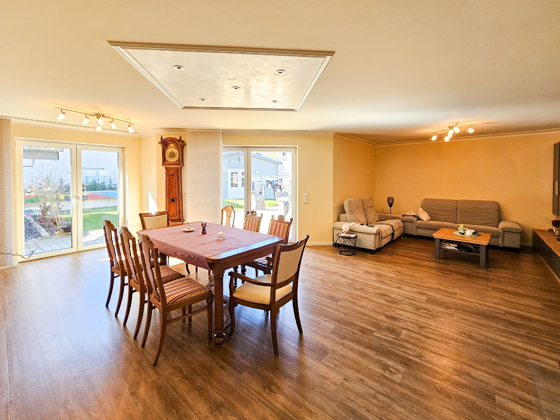 Von hier aus gelangen Sie direkt auf die groß-zügige Terrasse, die sich perfekt für gesellige Abende oder entspannte Stunden im Freien