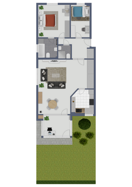 Ein Gartenanteil mit zwei Terrassenflächen bietet zusätzlichen Freiraum im Grünen – perfekt zum Entspannen, Gärtnern oder für kleine Auszeiten an der frischen Luft.