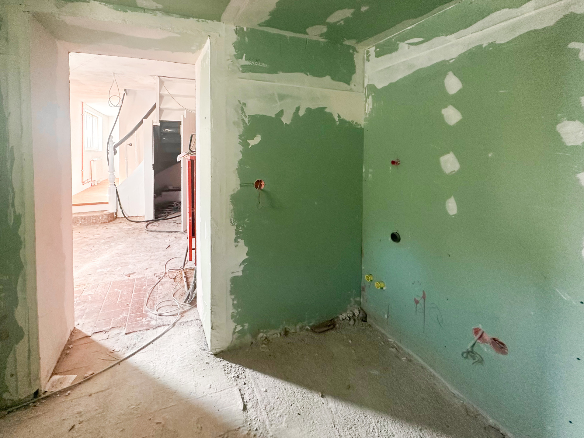 Die Wohnfläche beträgt ca. 150 m² und ist in großen Teilen bereits hochwertig saniert. In vielen Räumen wurde Echtholzboden verlegt. Der Einbau eines Kaminofens ist möglich. Das ausgebaute Dachgeschoss bietet zusätzlichen Wohnraum und vielfältige Nutzungsmöglichkeiten.