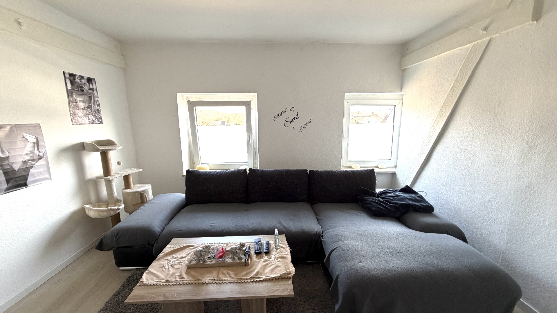 Im Dachgeschoss befindet sich die zweite Wohneinheit. Hierbei handelt es sich um eine 2-Zimmerwohnung, die über ca. 52 m² verfügt. Diese Wohnung ist mit einem Tageslicht-Wannenbad ausgestattet.