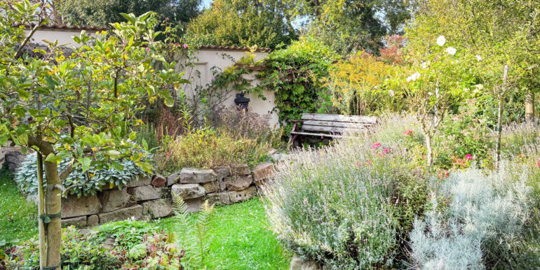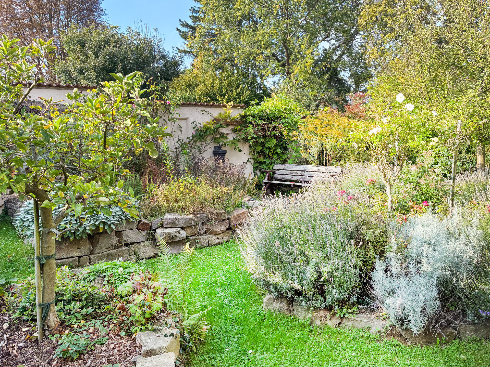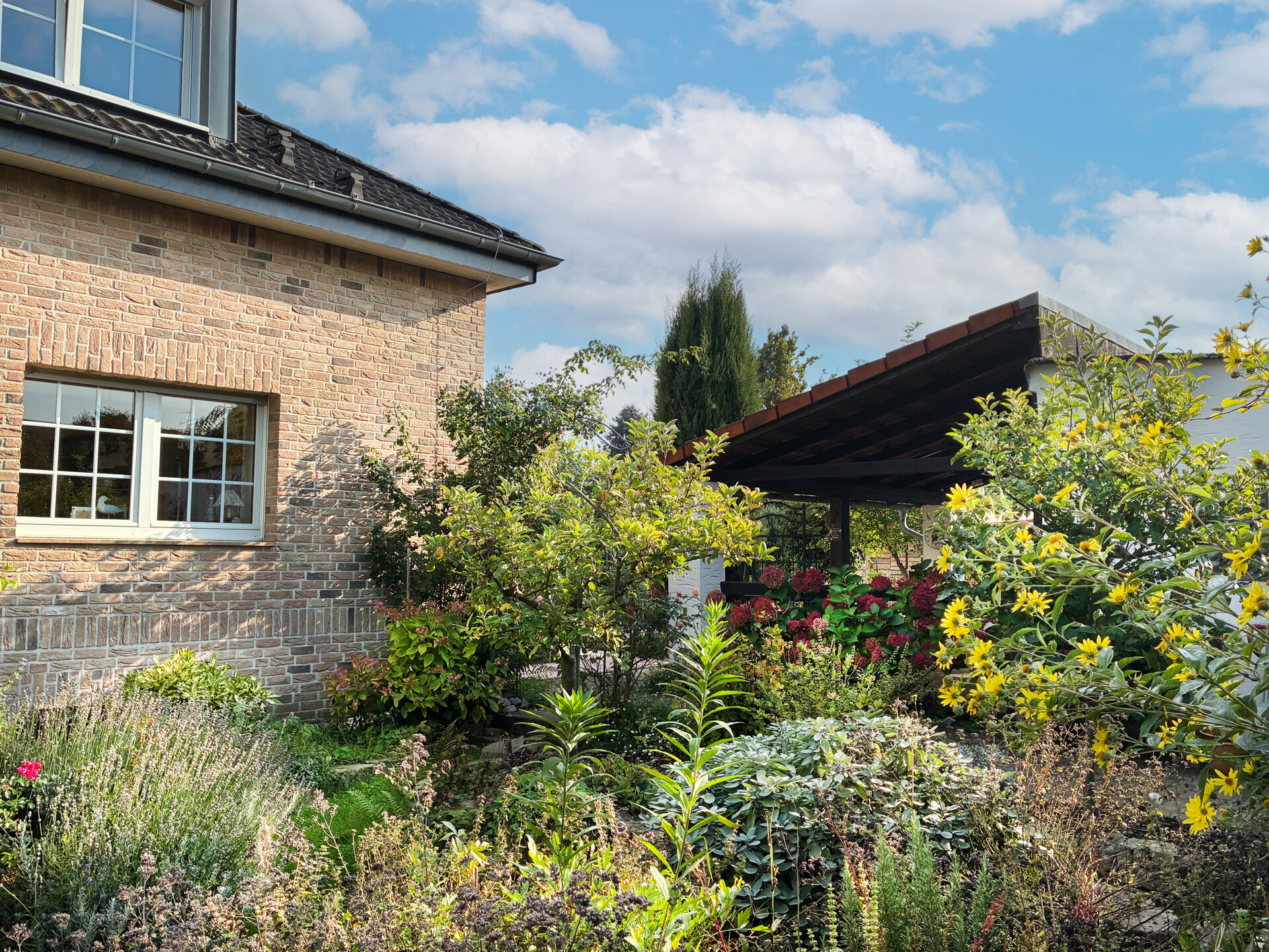 Der Garten ist ein echtes Highlight dieser Immobilie. Er wurde aufwendig und liebevoll angelegt. Im Sommer gibt es Kräuter, viele Rosen und Lavendel. Außerdem noch Apfelbäume. Der Garten ist mit Strom- und Wasserleitungen sowie drei Bodentanks und teilweise Beleuchtung versehen. Der Außenbereich bietet gleich zwei Terrassen, von denen eine überdacht ist und direkt an einen Gartenschuppen mit zwei Abstellräumen angrenzt.