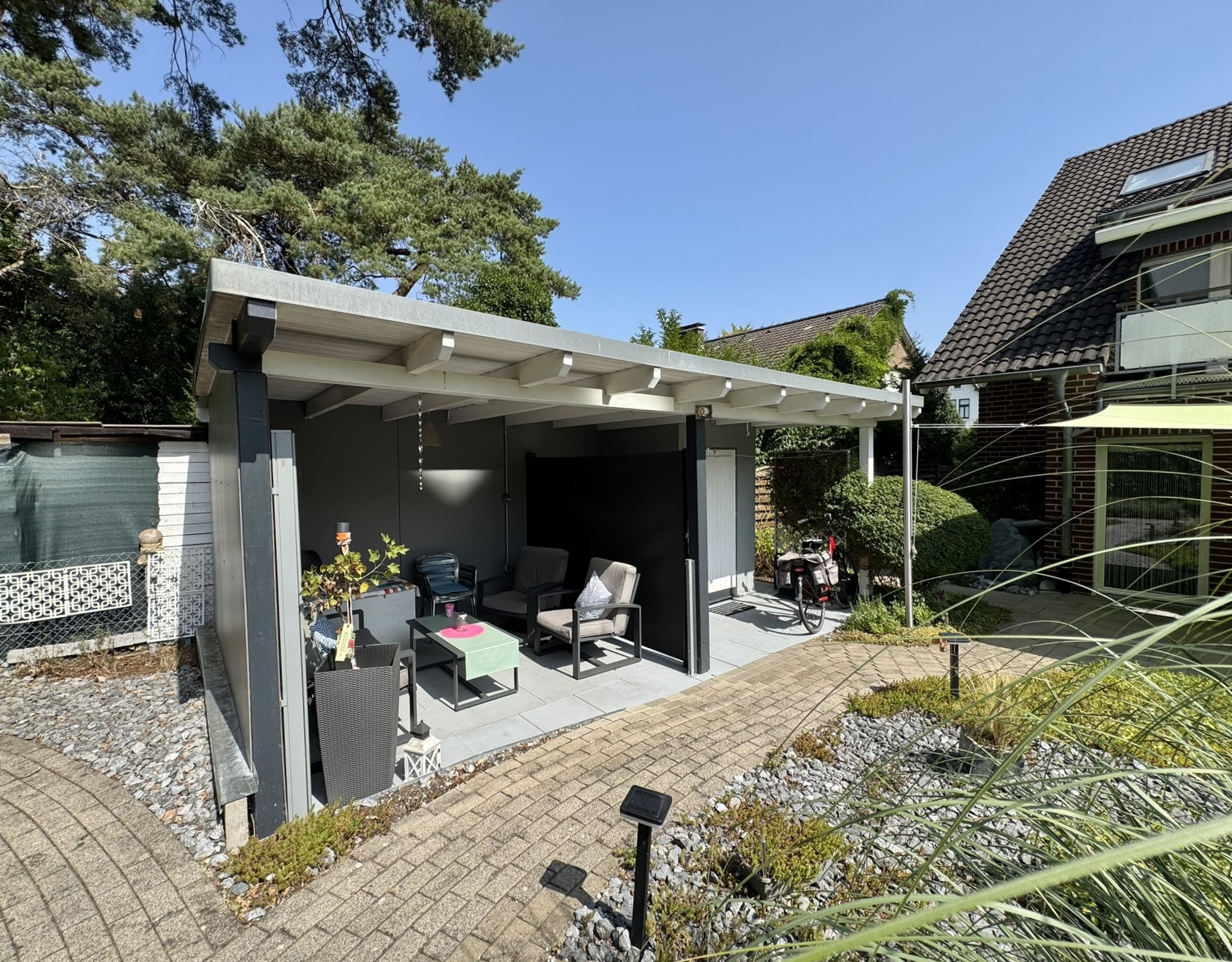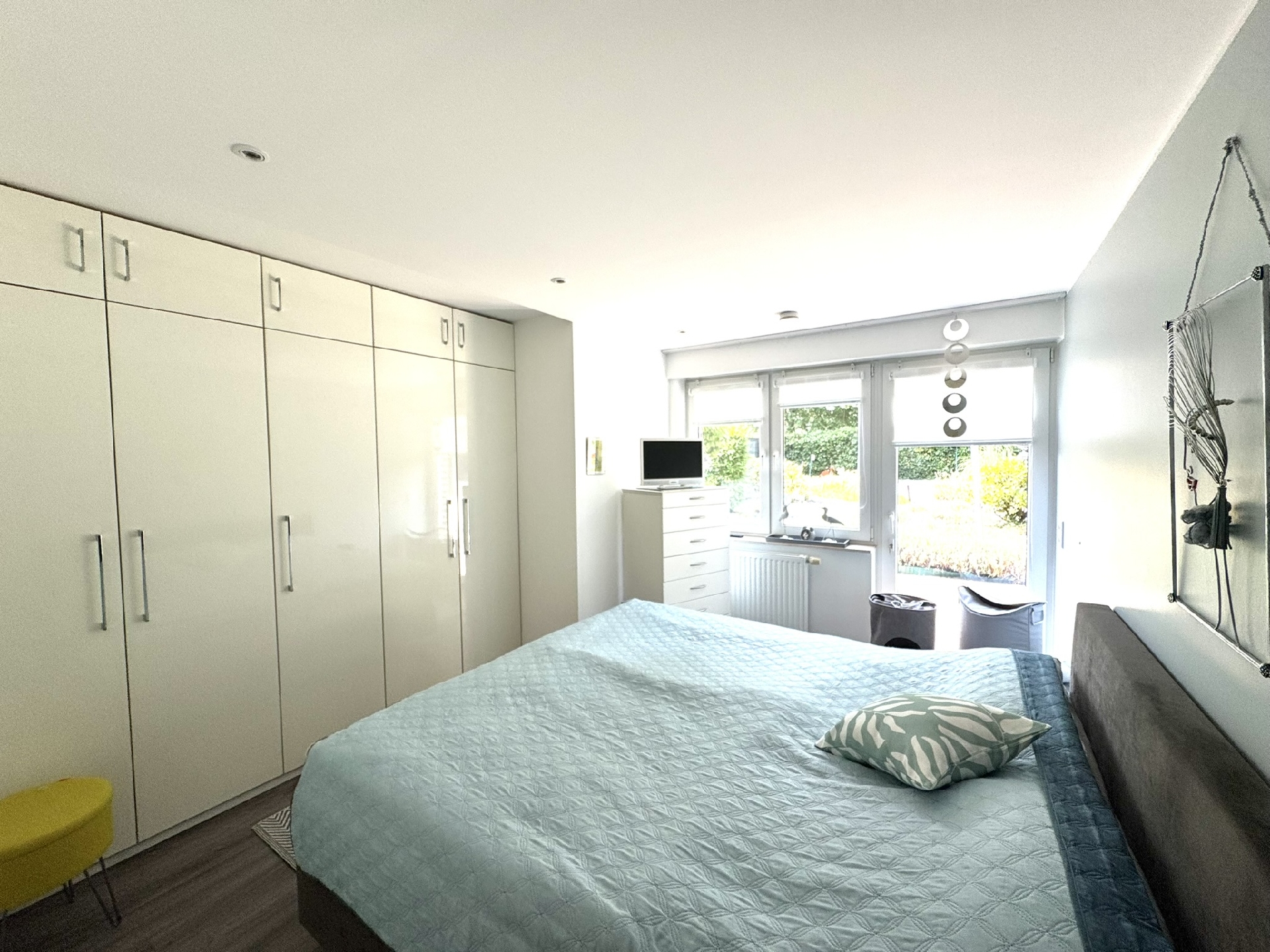Die schicke, großzügige Erdgeschosswohnung befindet sich in einem freistehenden Vierfamilienhaus. Die Wohnung wurde 2016 von den Eigentümern umfassend modernisiert und präsentiert sich mit einer gehobenen Ausstattung. Herzstück der Wohnung ist der großzügige Wohn-/Essbereich mit direktem Zugang zur sonnigen Südwest-Terrasse und dem weitläufigen, liebevoll angelegten Garten. Hier lädt ein Gartenhaus mit Pergola zu entspannten Stunden im Freien ein. Neben dem geräumigen Schlafzimmer steht ein weiteres Zimmer zur Verfügung, das sich ideal als Kinder- oder Arbeitszimmer eignet. Die separate, modern ausgestattete Wohnküche, eine einladende Diele, ein stilvolles Badezimmer, ein Gäste-WC sowie ein praktischer Hauswirtschaftsraum runden das Raumangebot ab. Alle Wohnbereiche sind barrierefrei gestaltet und bieten ein komfortables Wohngefühl. Zur Wohnung gehört zudem eine eigene Garage direkt am Haus. Dank der ruhigen Lage, der hellen Räume und des privaten Gartens ist diese Immobilie sowohl für Paare und Familien als auch als Altersruhesitz eine ideale Wahl.
