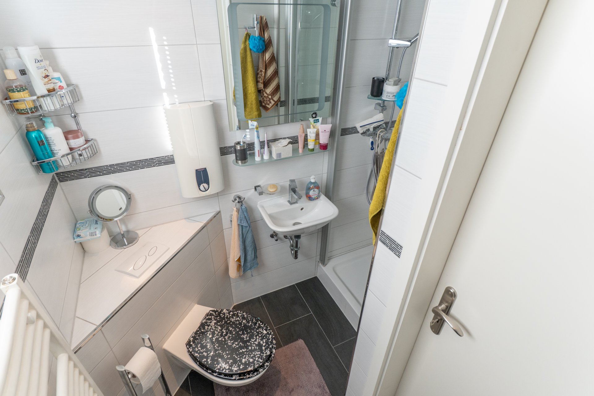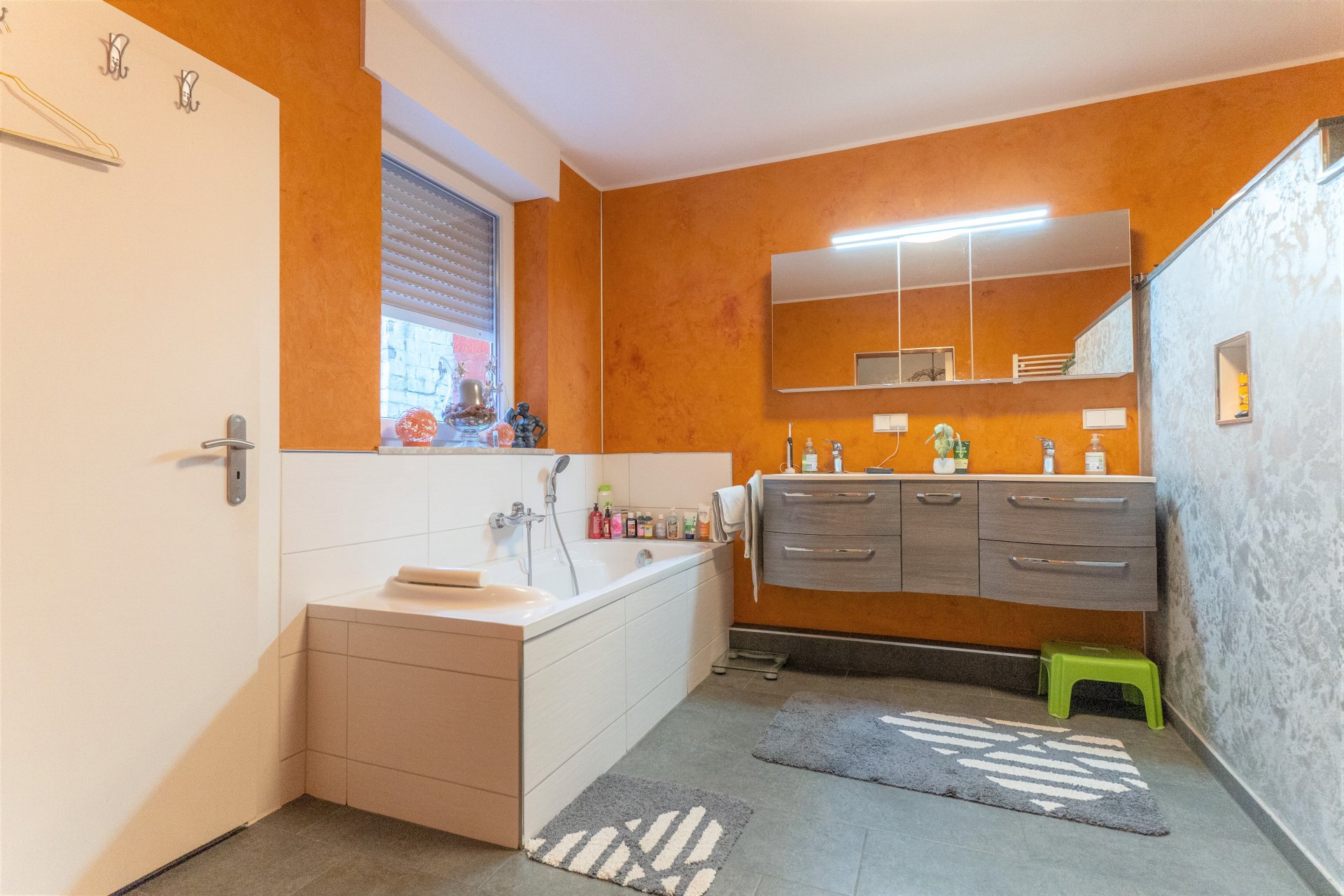 EG Tageslichtbad mit großer Walk-In- Dusche sowie separates WC mit Fenster. DG Tageslichtbad mit Dusche