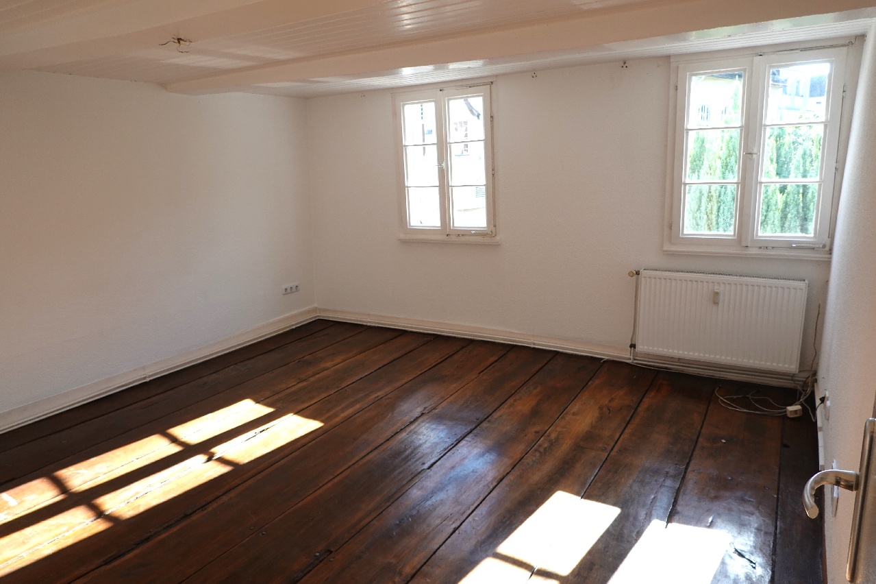Auch das Dachgeschoss überzeugt durch aufgearbeitete alte Holztüren mit historischem Charme. Zwei Schlafzimmer (ca. 12 m² mit Einbauschrank sowie ca. 18 m²) und ein Tageslichtbad mit Badewanne runden diese Wohnebene ab. Zusätzlich bietet der Dachboden weiteren Stauraum.
