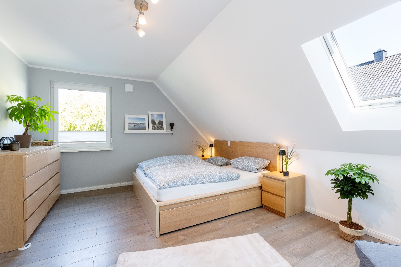 Das Obergeschoss mit drei schönen, hellen Zimmern sowie das Tageslichtbad mit Wanne zzgl. Dusche passen sehr gut zum hellen und freundlichen Bild des Hauses.