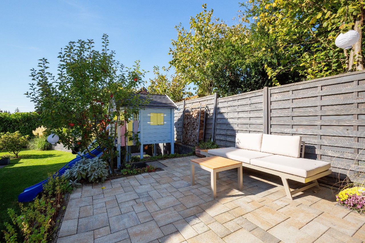 Das Grundstück mit 517 m² wurde insgesamt aufwendig angelegt. Ein eingezäunter Garten mit Hecken und hochwertigen Pflanzen sorgen für Ihre Privatsphäre und eine grüne Oase im eigenen Garten.