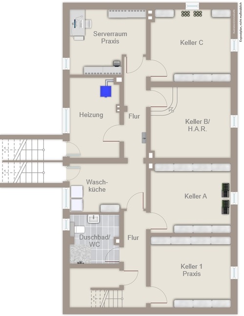 – Erdgeschoss sowie ein Teil des Obergeschosses ist eine gut eingeführte Arztpraxis, die auf einer Gesamtfläche von ca. 180 m² untergebracht ist.