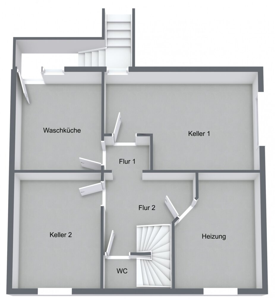 Im Untergeschoss finden Sie 2 Kellerräume, eine Waschküche, ein WC und den Heizungskeller.