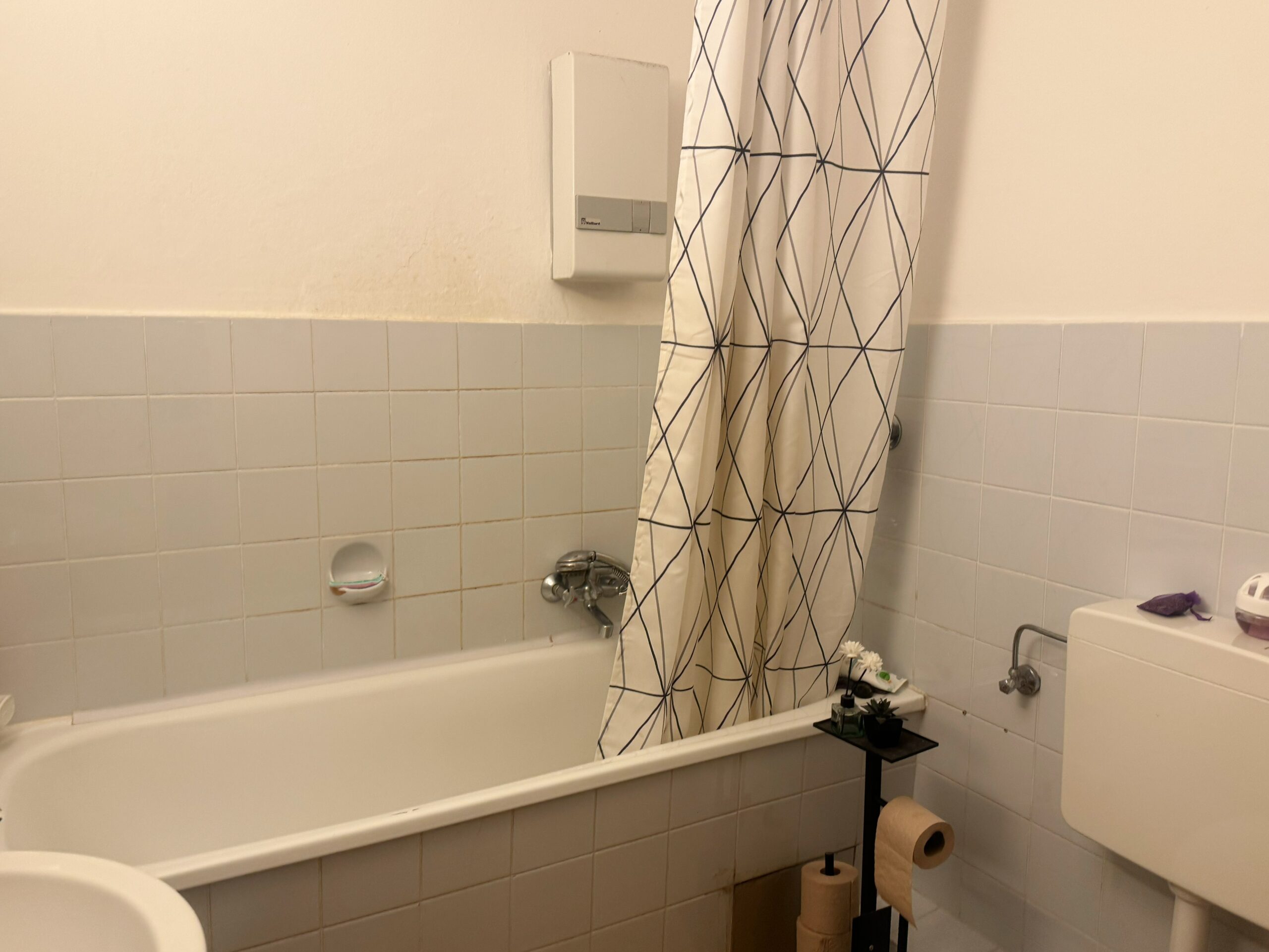 Das Bad ist mit WC, Wanne und Waschtisch ausgestattet. In den Wohnräumen ist Laminatboden verlegt, während die Küche mit PVC und das Bad mit Fliesen ausgestattet sind.