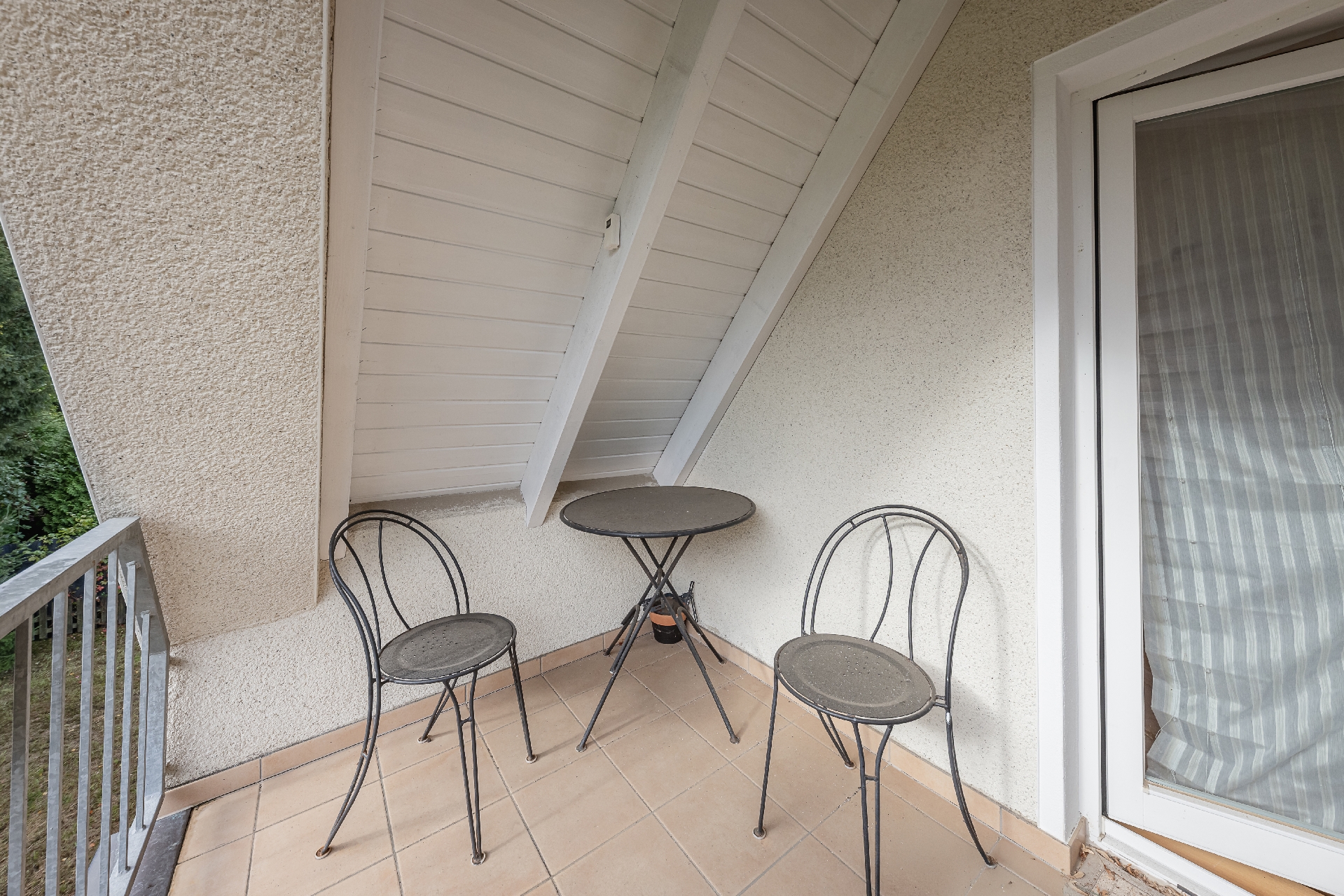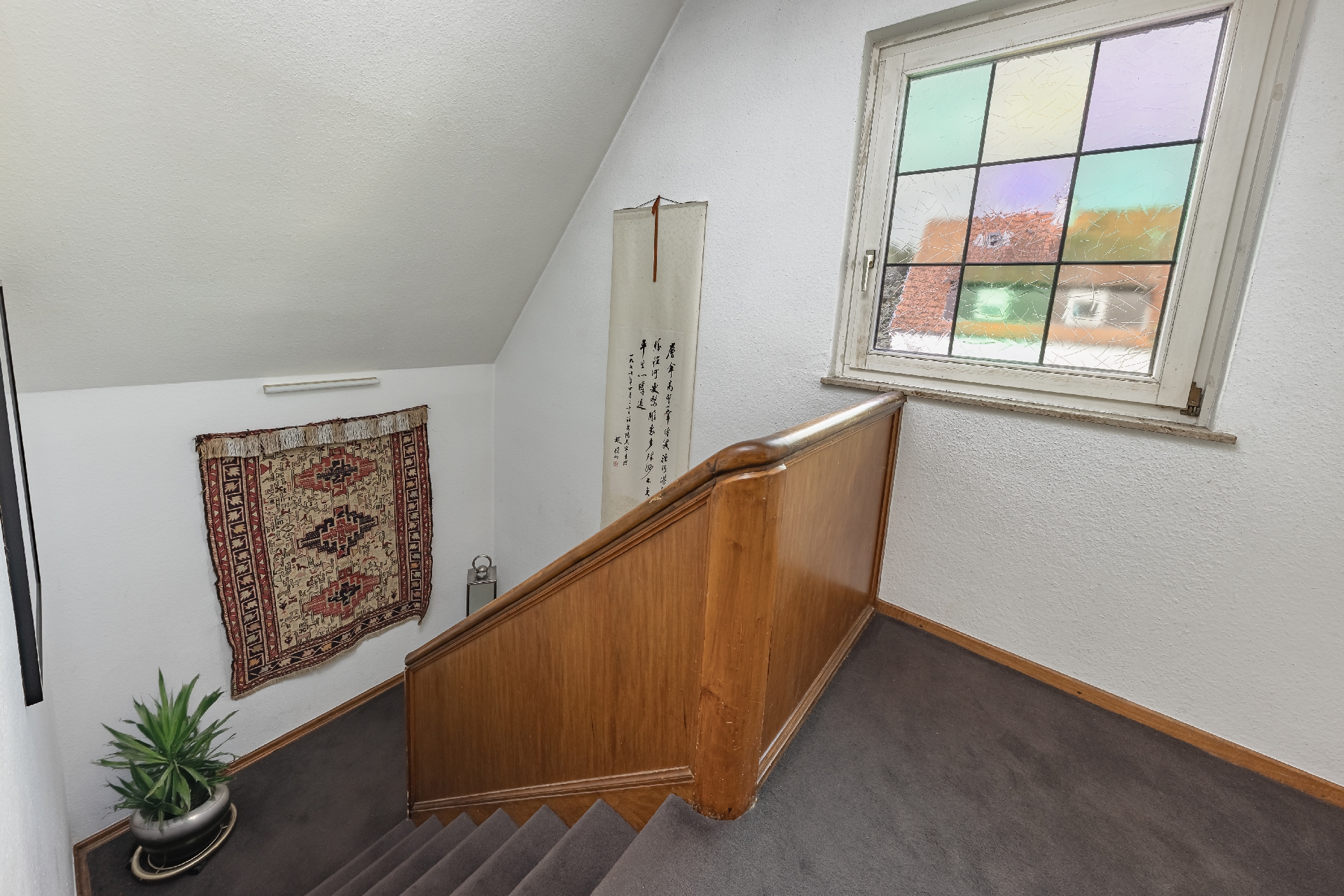 Im Dachgeschoss befinden sich ein weiteres Schlafzimmer und das Familienbad. Die separate Wohneinheit bietet mit Schlafzimmer, Küche, Bad und einem großzügigen Wohnraum mit Südbalkon einen eigenen Rückzugsort – mit herrlichem Blick über Felder und Wiesen und einem Hauch von Urlaubsfeeling.