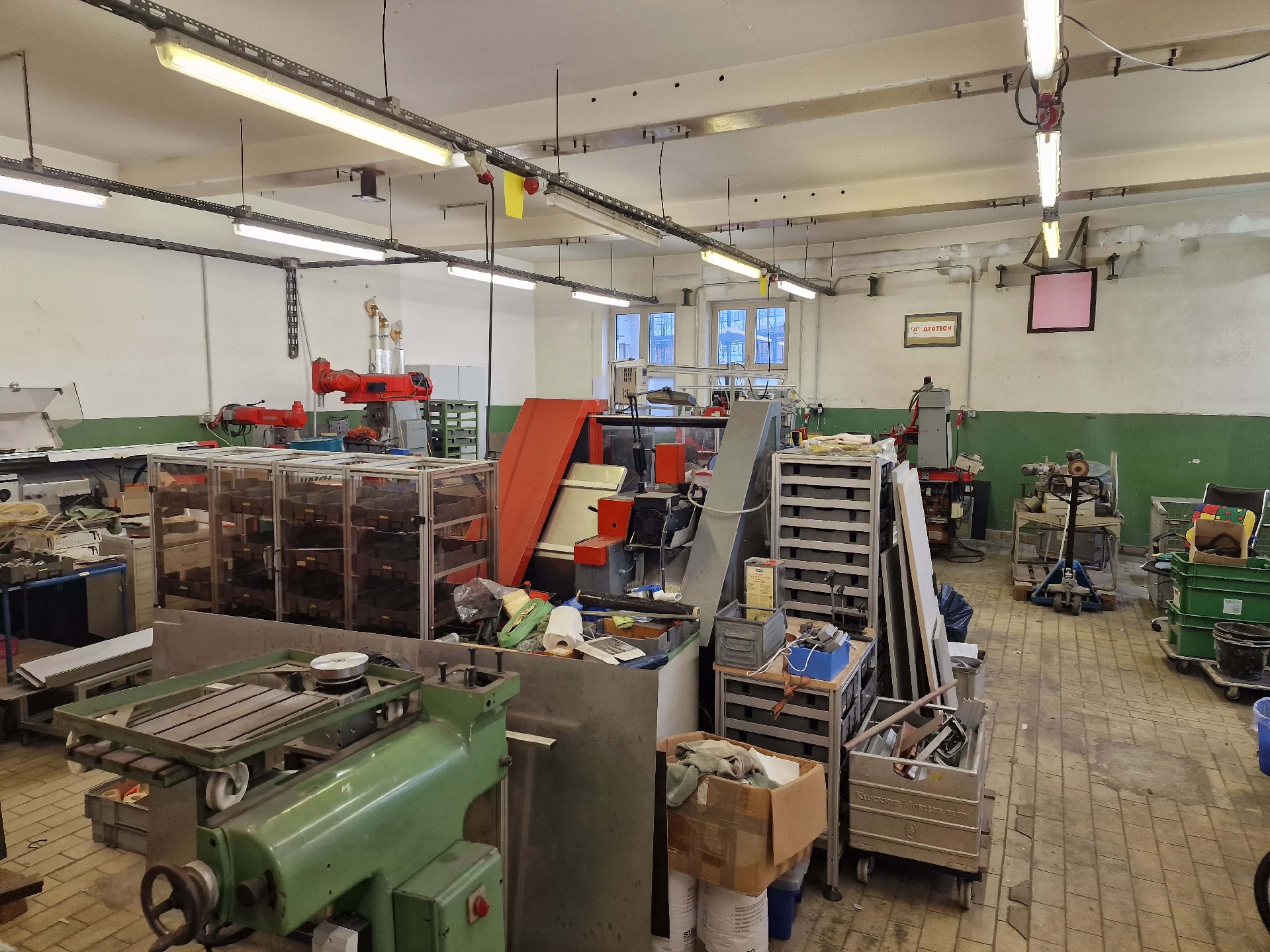 Es empfängt Sie eine Gewerbehalle aus den 60iger Jahren. Die Backsteinhalle wurde durch den Eigentümer neu aufgeteilt und saniert. Die Hallengröße beträgt 138 m² und verfügt über ein separates WC. Die Halle/Werkstatt ist ebenerdig und verfügt über eine Tür mit Doppelflügel und hat eine Innenhöhe von 3,75 – 3,95 Metern. Die Anlieferung von Waren läuft die vorgebaute Rampe. Hier können Sie mit einem 7,5tonner rückwärts ran fahren, oder die Ware mit einer Ameise über die Rampe in die Mietfläche laden. Die Gewerbefläche wird über Radiatoren beheizt. Starkstromanschlüsse sind in Hülle und Fülle vorhanden. Die Mietfläche ist komplett unterkellert. Diese Fläche kann kostenlos genutzt werden.